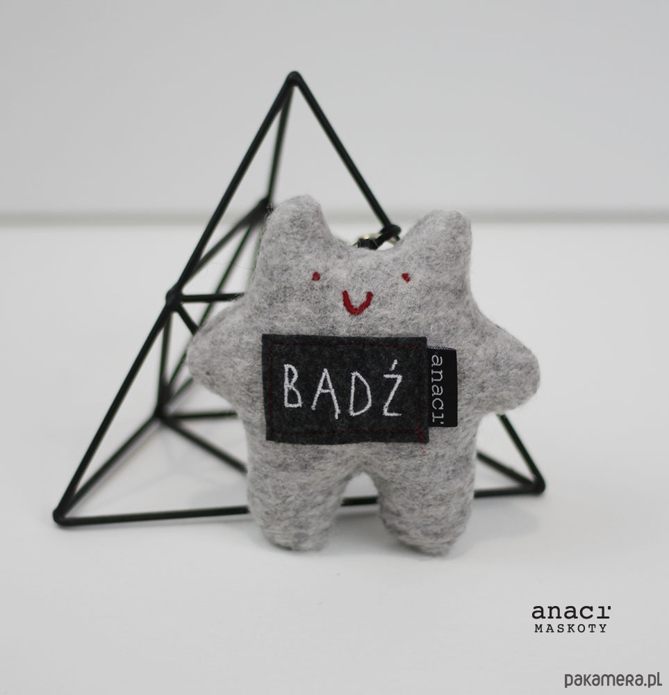 Mierzy sobie 11 cm., zaopatrzony w filcową plakietkę z wyhaftowaną dedykacją.