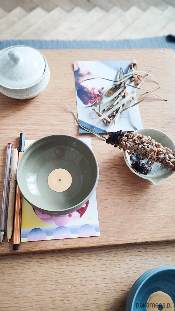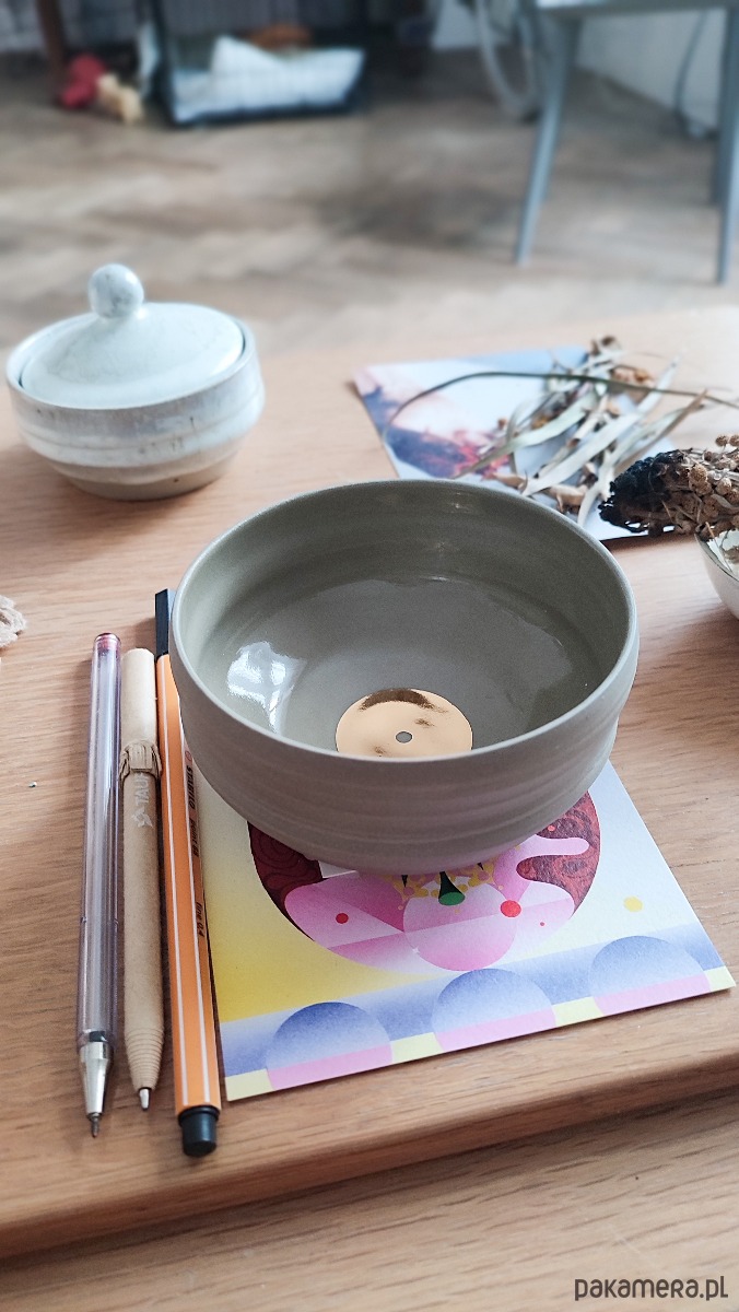Ręcznie wykonana ceramiczna czarka w kojącym odcieniu oliwkowej kamionki.