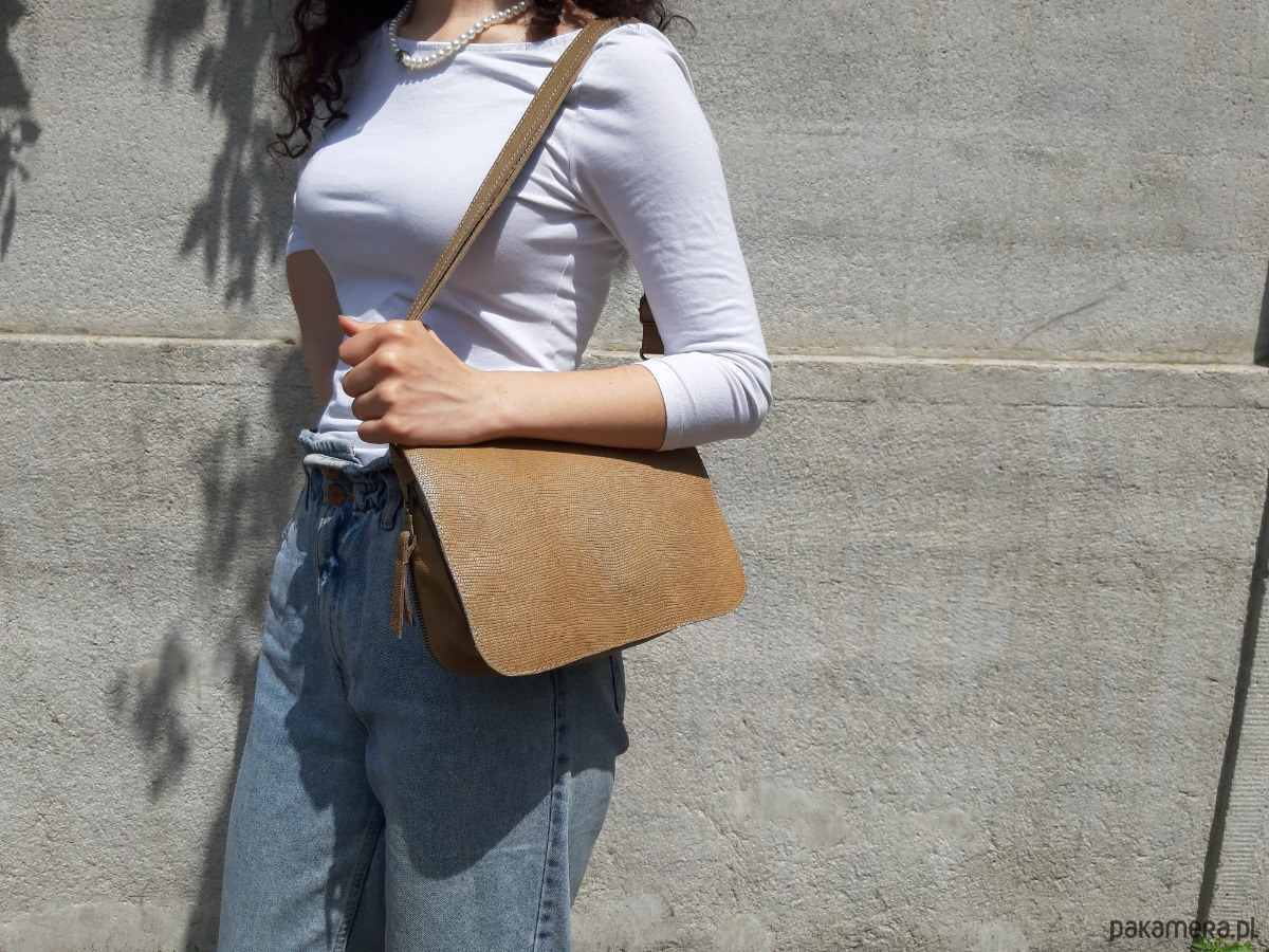 Mała skórzana torebka do codziennego biegania we wszelkich życiowych sprawach. W gruncie rzeczy jest całkiem pojemna, zmieści notes, duży portfel, telefon, klucze i inne potrzebne rzeczy. A przy tym jest piękna i robiąca wrażenie.