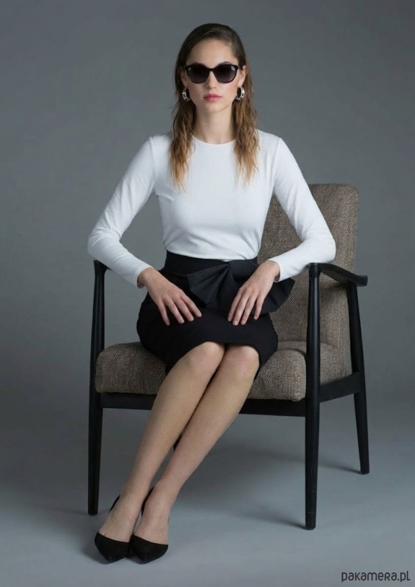Szukasz bazy do stylizacji, która przyciągnie każde spojrzenie, a jednocześnie pozostanie klasyczna? Ta czarna spódnica ołówkowa to kwintesencja kobiecości w nowoczesnym wydaniu. Jej znakiem rozpoznawczym jest spektakularna, rzeźbiarska kokarda w talii, która dodaje całości luksusowego charakteru.