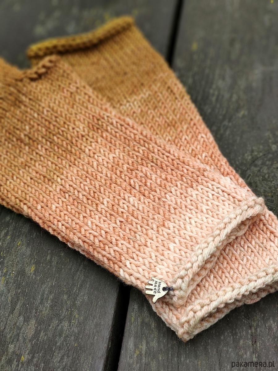 Ciepłe mitenki wykonane na drutach z wysokiej jakości włóczki w optymistycznej kolorystyce. Włóczka- to 100% wełna merino superwash, trochę sprężysta, dzięki czemu ładnie dopasowuje się do dłoni.
