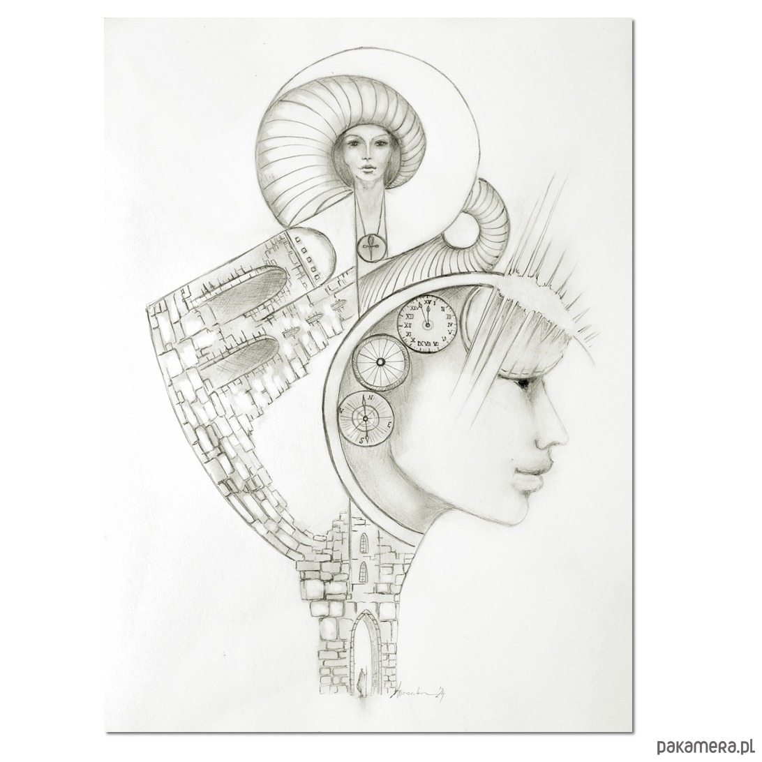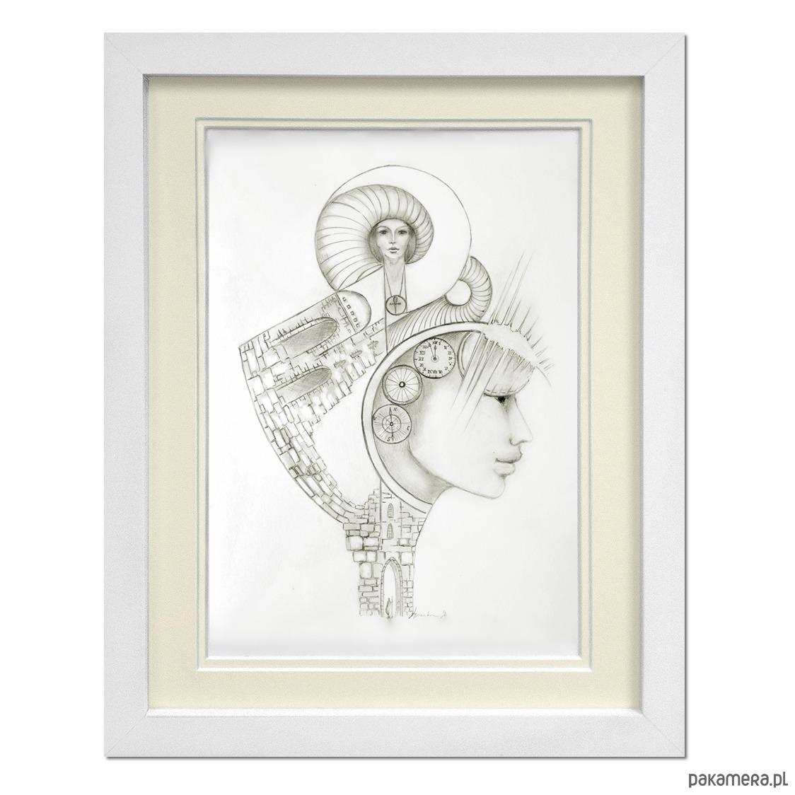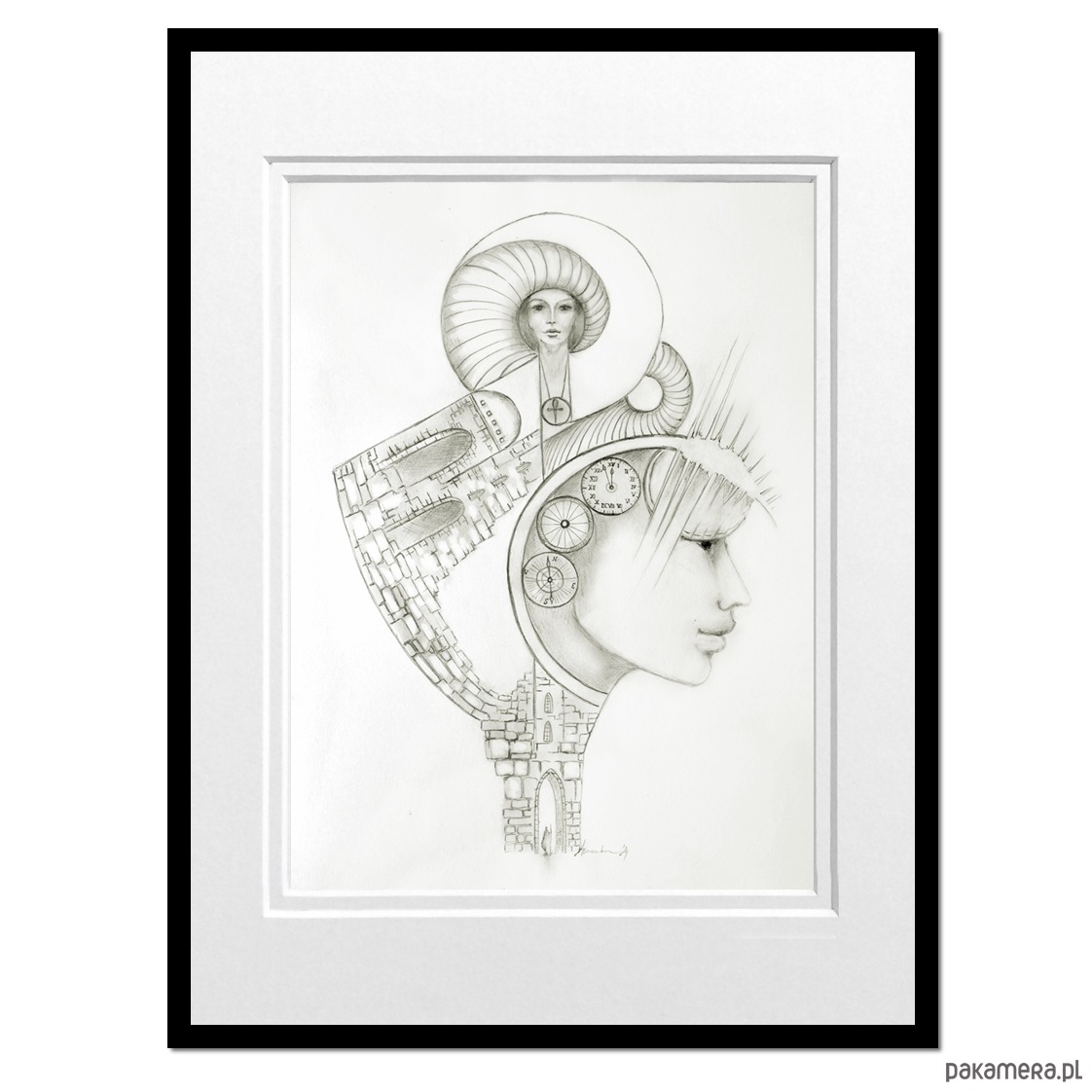 Oryginalna grafika/ rysunek wykonany ołówkiem na papierze (brystol, w kolorze ecru). Format: ok. 30/40 cm. Rysunek jest sygnowany, sprzedawany bez oprawy co daje kupującemu swobodę w doborze ramy pasującej do wnętrza. Na zdjęciach kilka wizualizacji z przykładową oprawą.