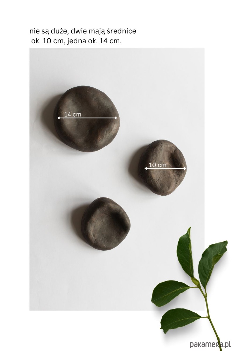 Uśrednione średnice to: ok. 14 cm w przypadku większej zawieszki i ok. 10 cm, dwie mniejsze.