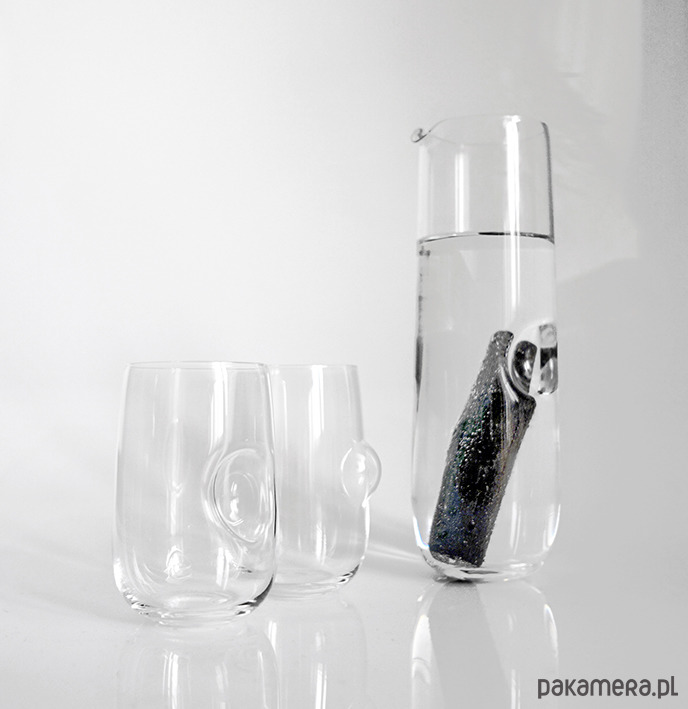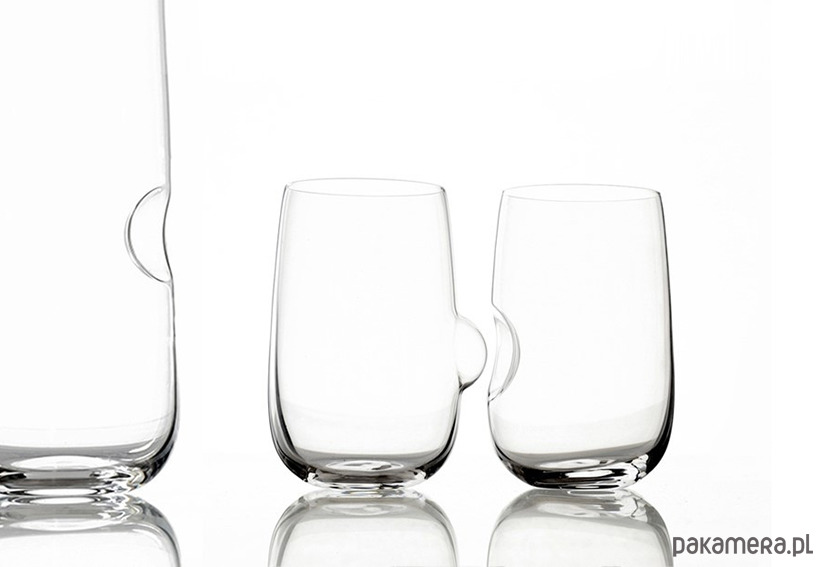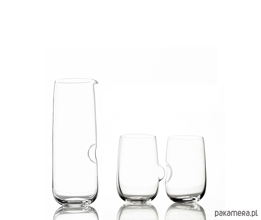 SET SKŁADA SIĘ Z KARAFKI ORAZ DUETU SZKLANEK Z WGŁĘBIENIEM I WYPUSTKĄ.