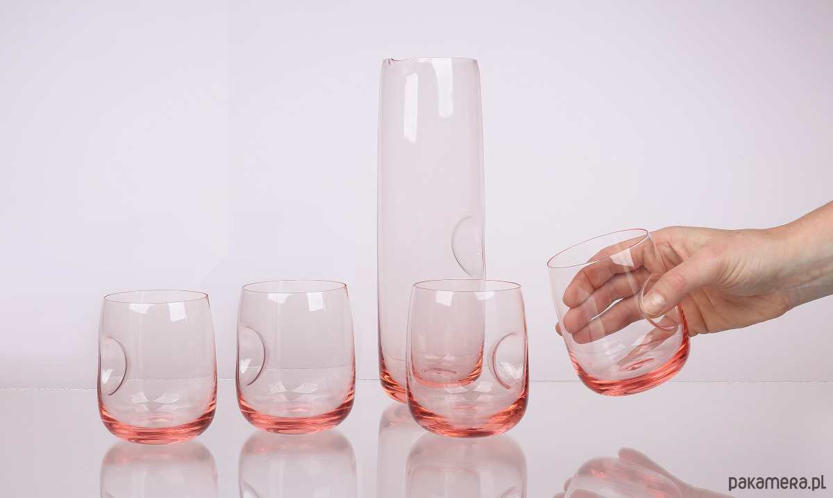 SET SKŁADA SIĘ Z KARAFKI ORAZ CZTERECH NISKICH SZKLANEK.