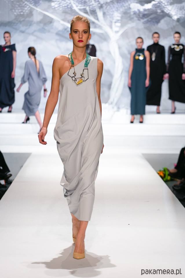 dół wszyty łukiem asymetryzuję sukienę, nadając jej niepowtarzalny kształt
