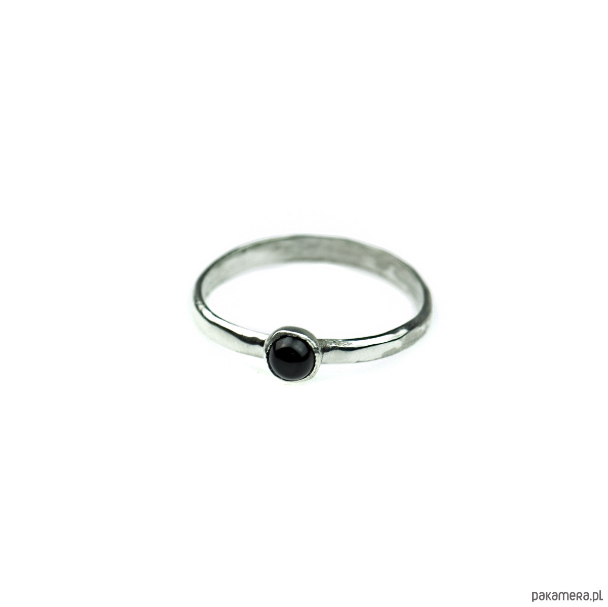 Pierścionek z onyksem w klasycznej oprawie. Wykonany ze srebra 925.
