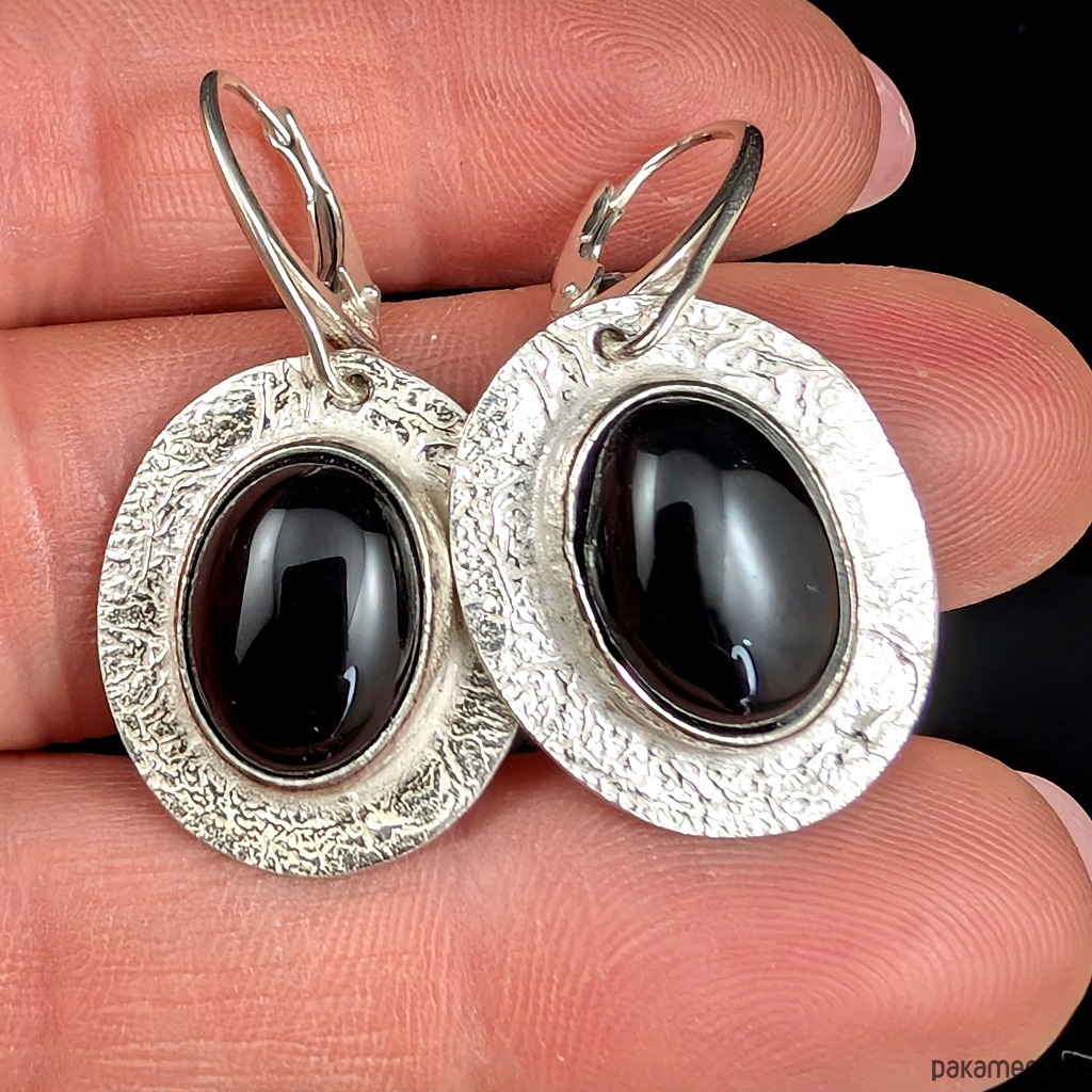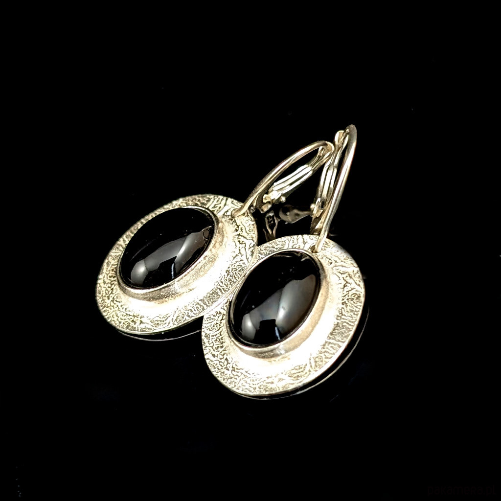 Kolczyki wykonane ze srebra próby 925 oraz pięknych czarnych onyksów.