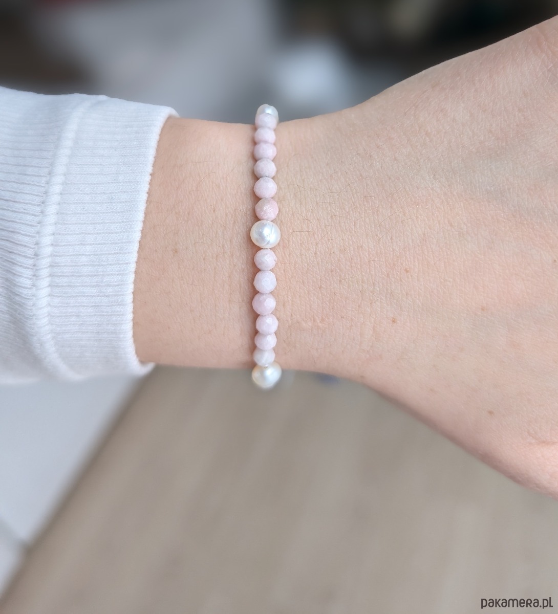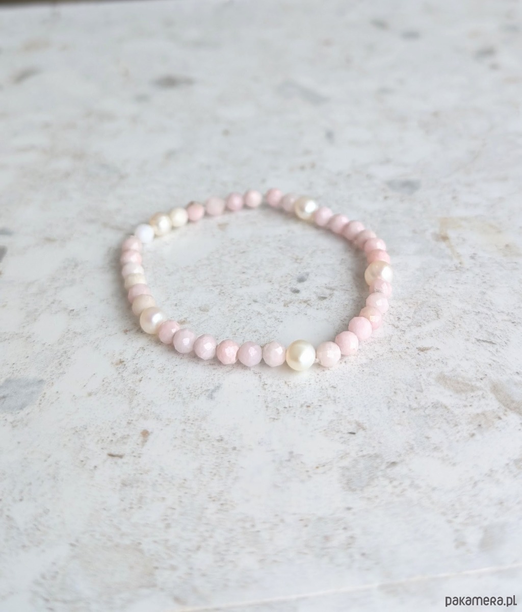 Opał i perły - dziewczęca bransoletka na gumce