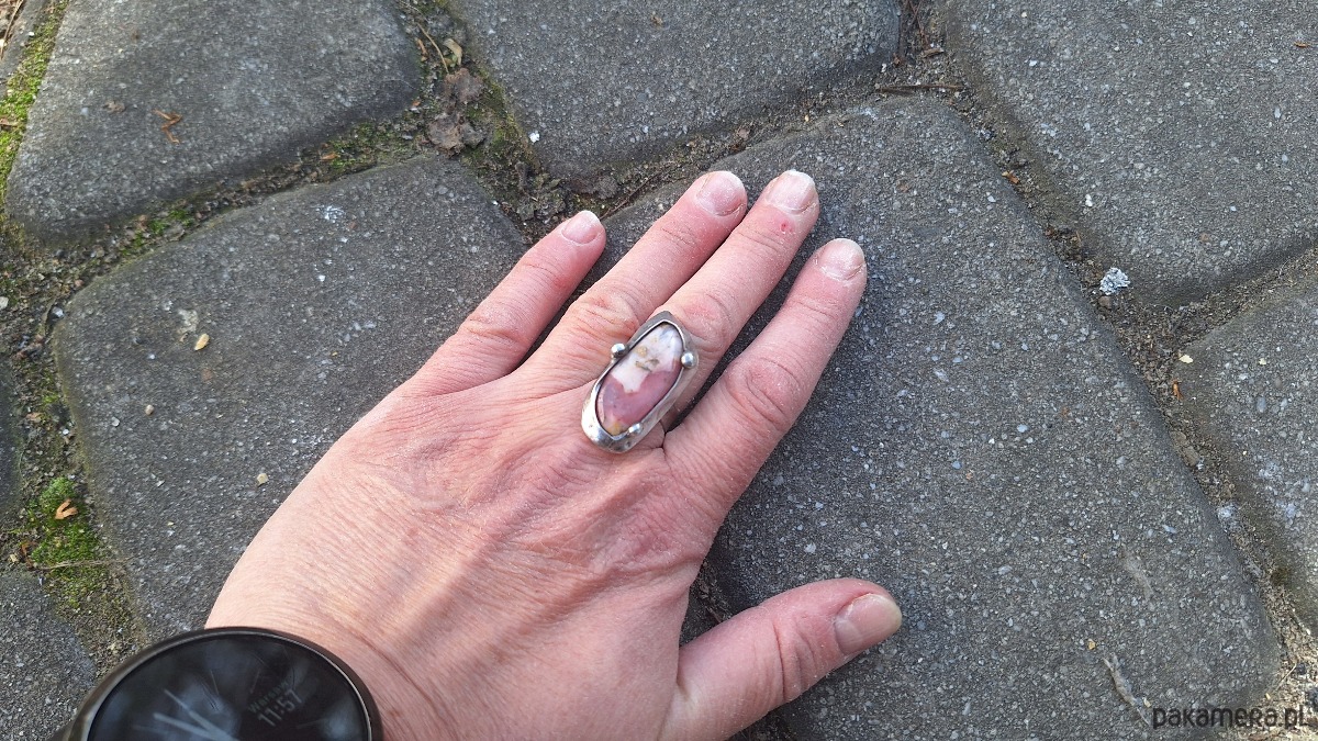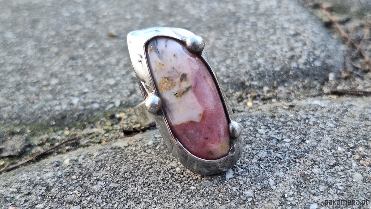 Opal różowy - pierścionek regulowany
