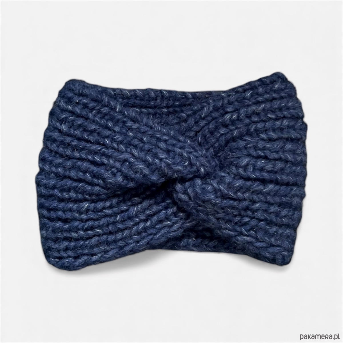 Granatowa opaska wykonana z naturalnej mieszanki 50% alpaki, 17% wełny merino i 33% bawełny.