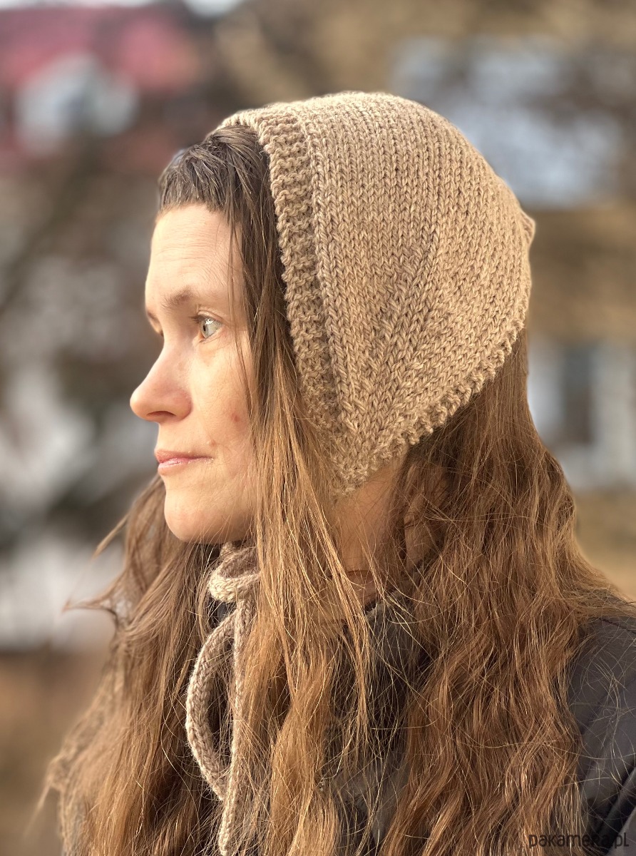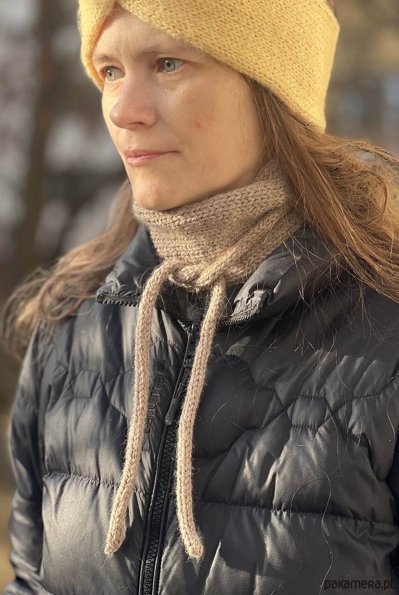 Opaska 3w1 bonetka opaska mini szalik z wełny owczej i alpaki beżowa