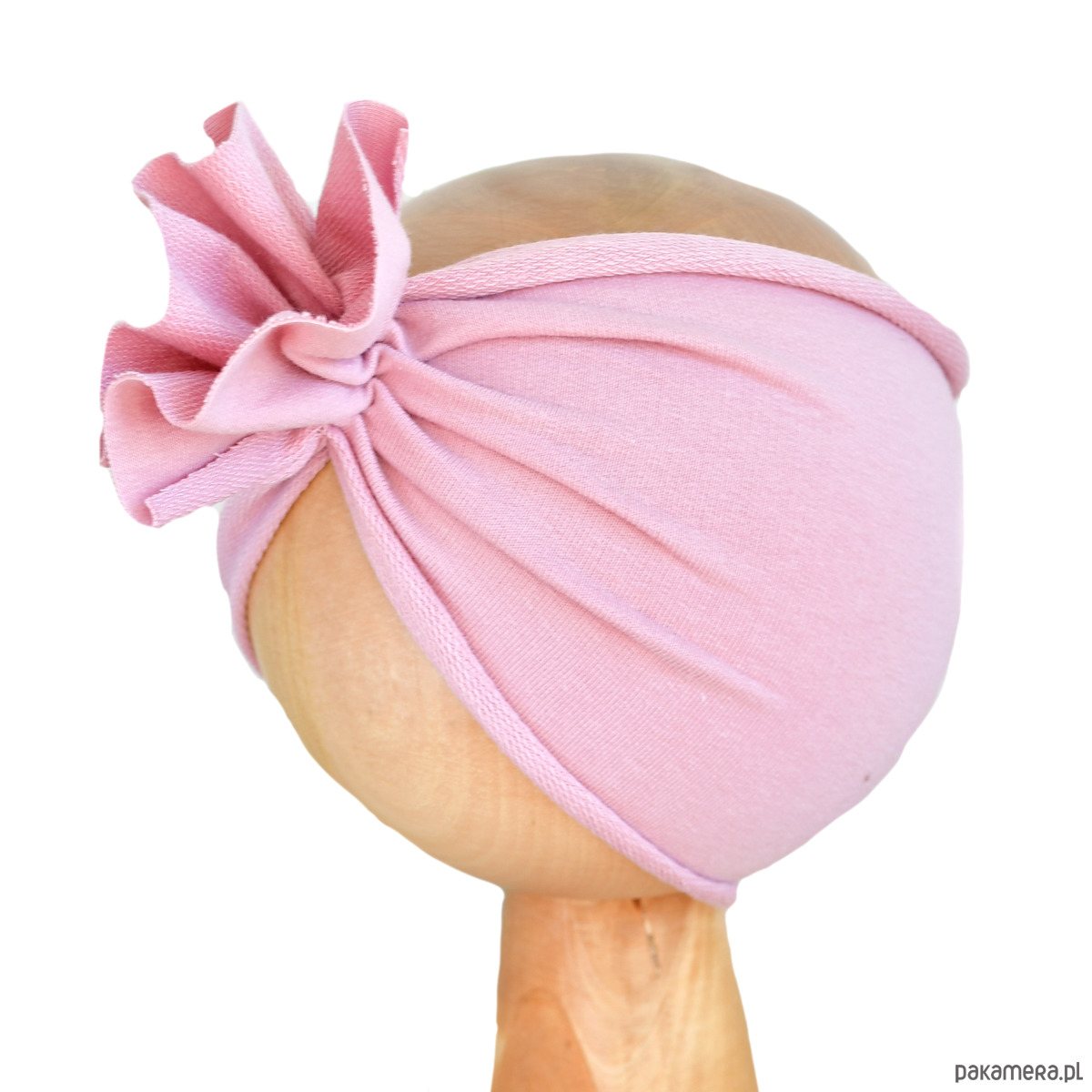 Opaska bawełniana niemowlęca SZEROKA turban brudny róż