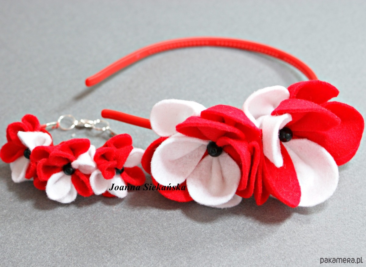 Opaska z kwiatuszkami wykonanymi z filcu,
