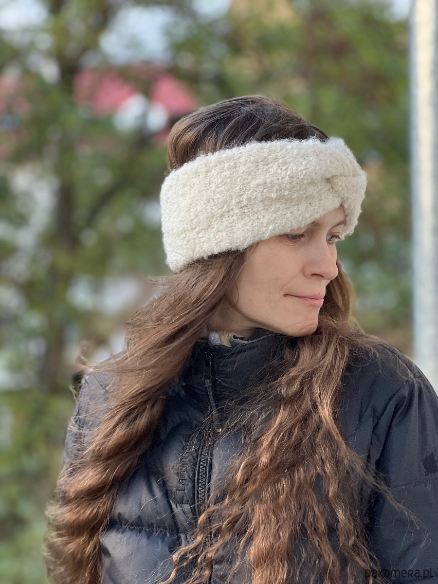 Opaska boucle z wełny owczej i alpaki kremowa biel