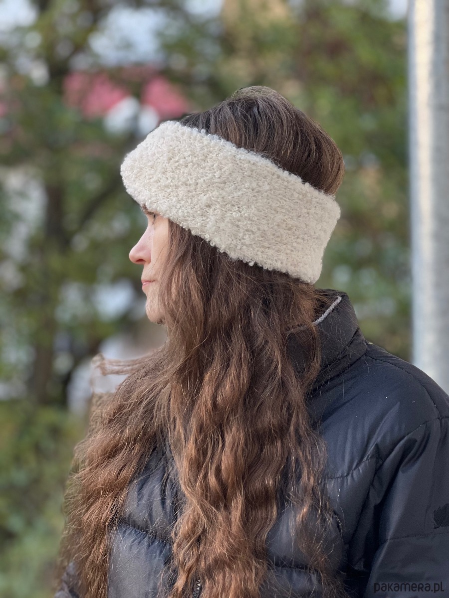 Opaska została wykonana z puchatej i ciepłej włóczki boucle 80% Alpaka, 15% Wełna, 5% Poliamid. Opaska posiada włosek, jest miła i ciepła i puchata. Ta mieszanka naturalnych włókien sprawi, opaska ogrzeje Twoją głowę. W chłodniejszy dzień będzie Ci ciepło, a w cieplejszy Twoja głowa się nie spoci. Idealna na chłodny poranek, wieczorny spacer z psem, wietrzną pogodę. Zmieścisz ją do torebki lub kieszeni kurtki.