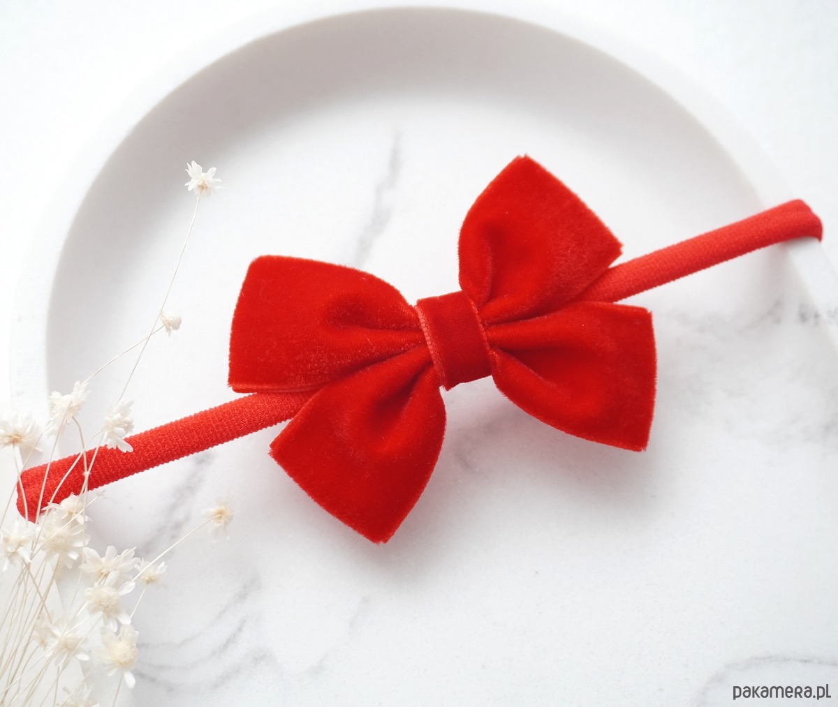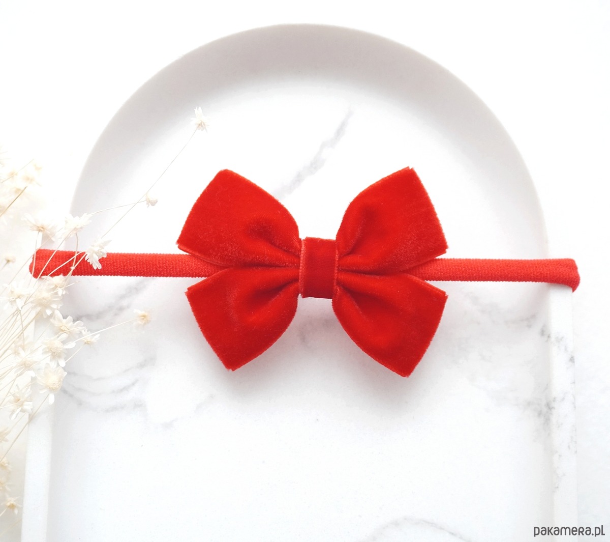 Opaska dla niemowlaka świąteczna kokardka welurowa CZERWONA OTS04