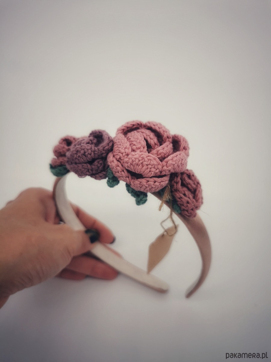 Została ozdobiona 4 kwiatami róży, w odcieniach różu.