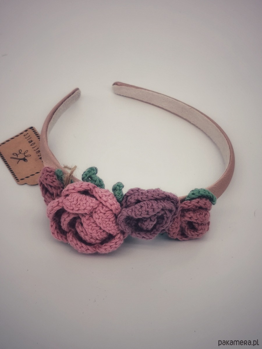 Opaska została wykonana na atlasowej bazie, zabezpieczonej zamszowy podszyciem, dzięki czemu opaska nie zsuwa się z głowy.