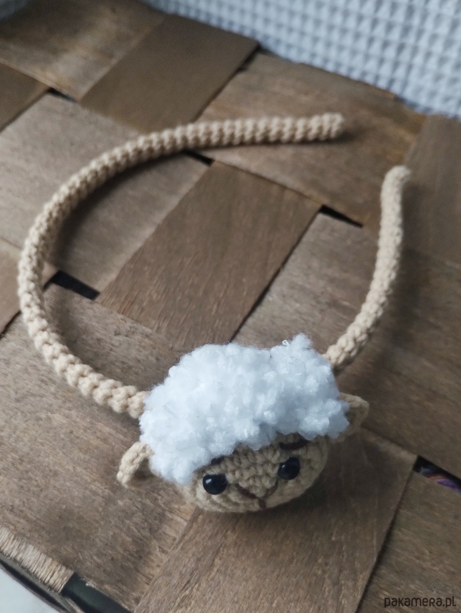 A przechodząc do szczegółów dotyczących opaski... owieczka ma wielkość ok 5x7 cm. Opaska ma długość 36 cm.