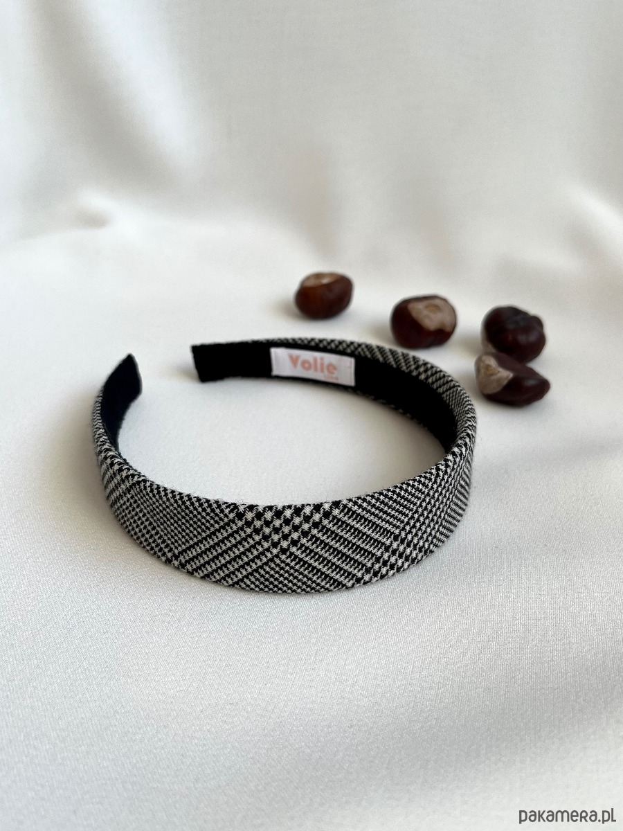 Płaska opaska do włosów Black Check to minimalistyczny a zarazem efektowny dodatek do każdej stylizacji.