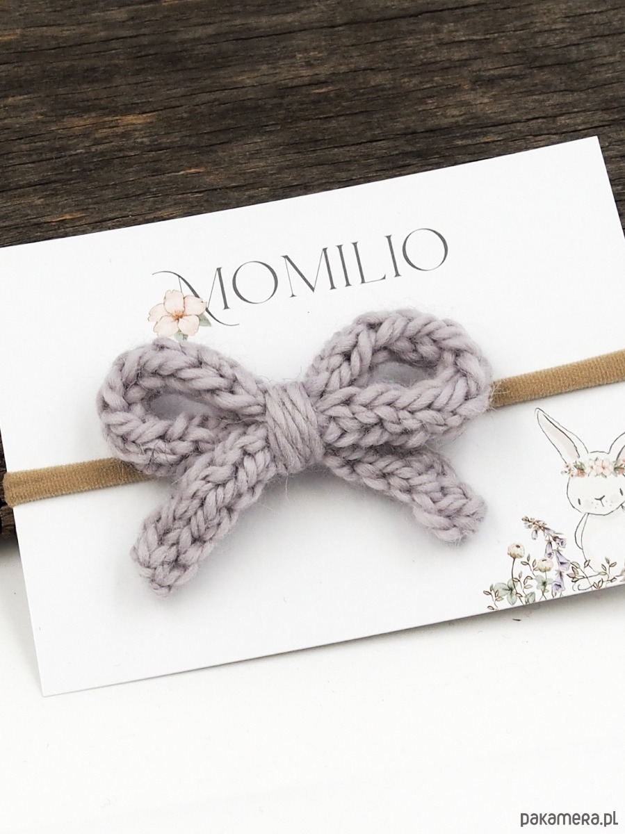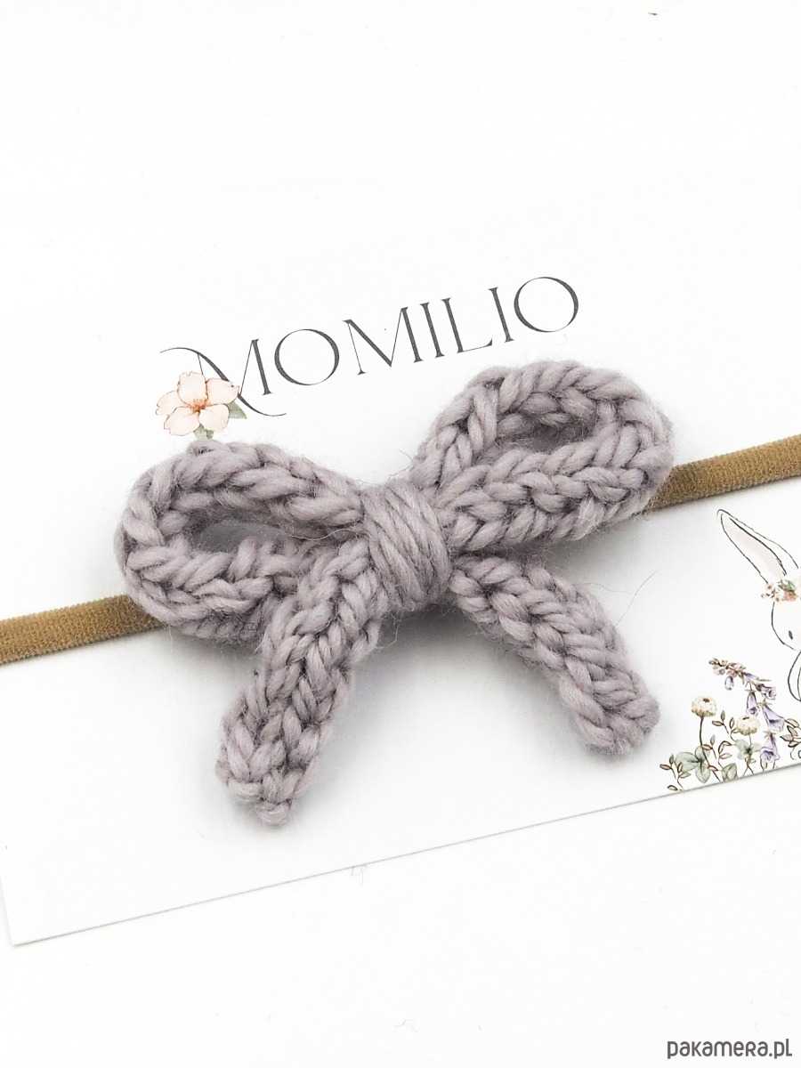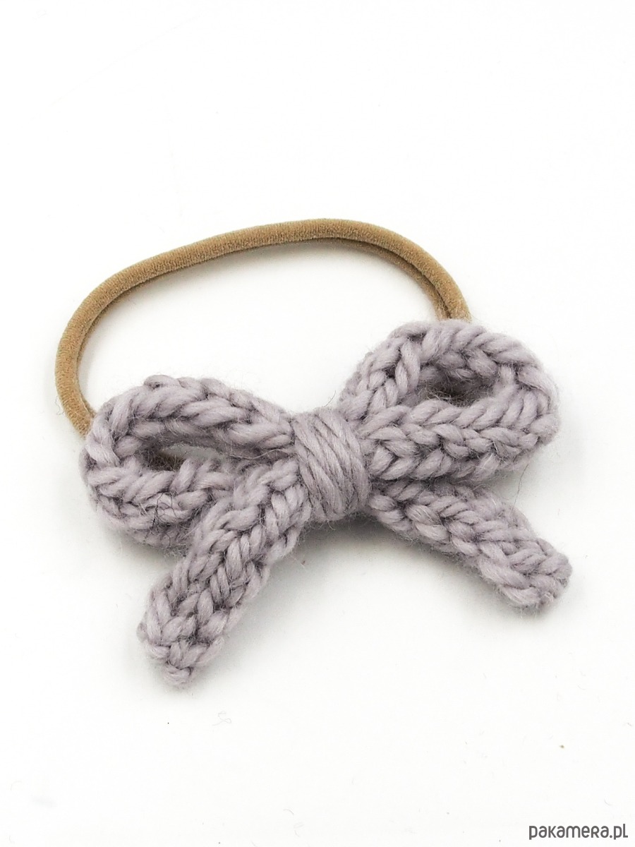 Opaska z wełnianą kokardką wykonaną na szydełku.