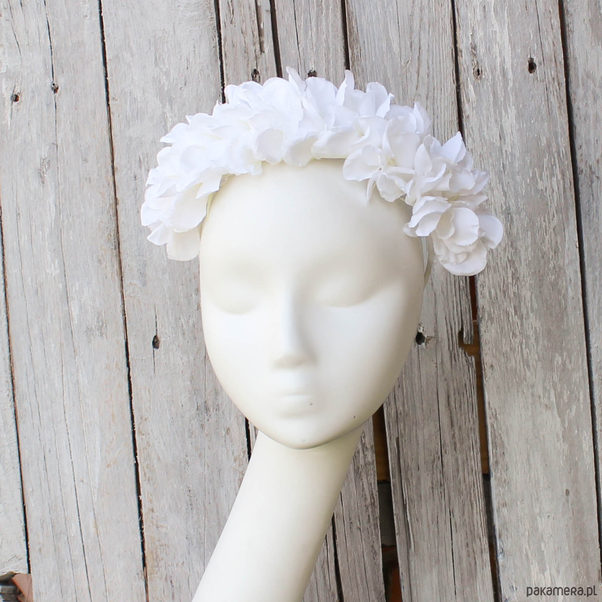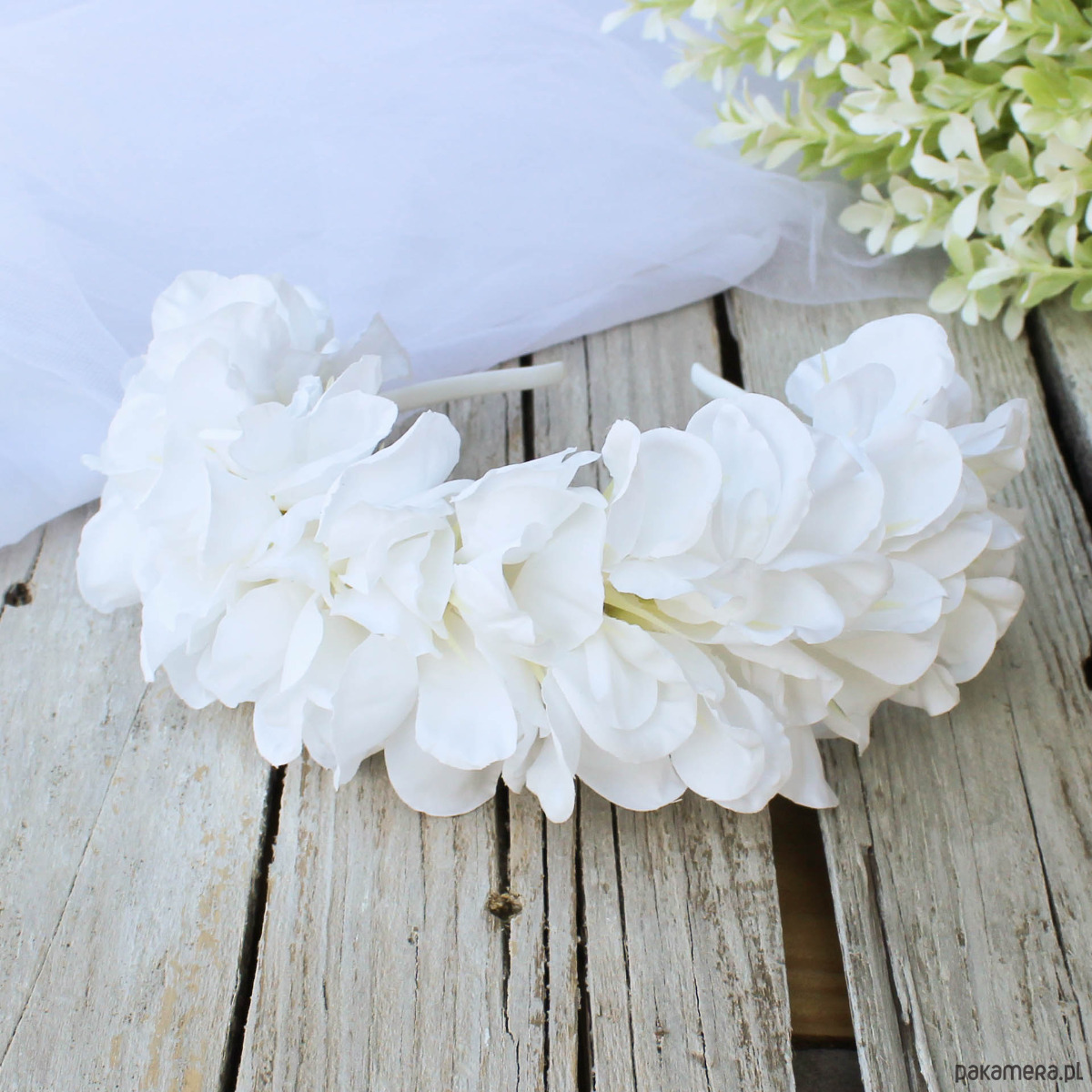 Opaska komunijna lub ślubna, rozmiar uniwersalny dla dziecka i osoby dorosłej. Opaska wykonana z wysokiej jakości sztucznych kwiatów, które do złudzenia przypominają żywe kwiaty. Opaska w formie korony jest świetną alternatywą dla wianka.