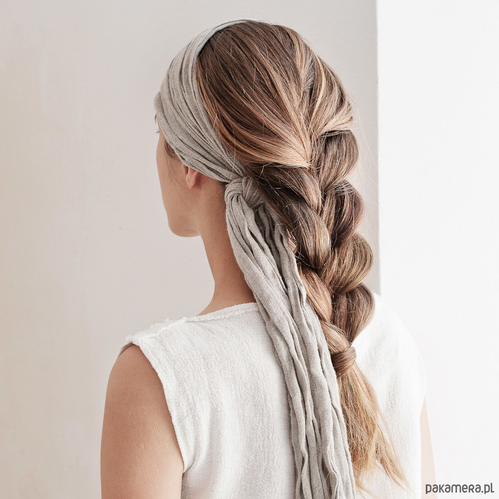 Lniana wstęga pomocna jest przy stylizacji włosów.