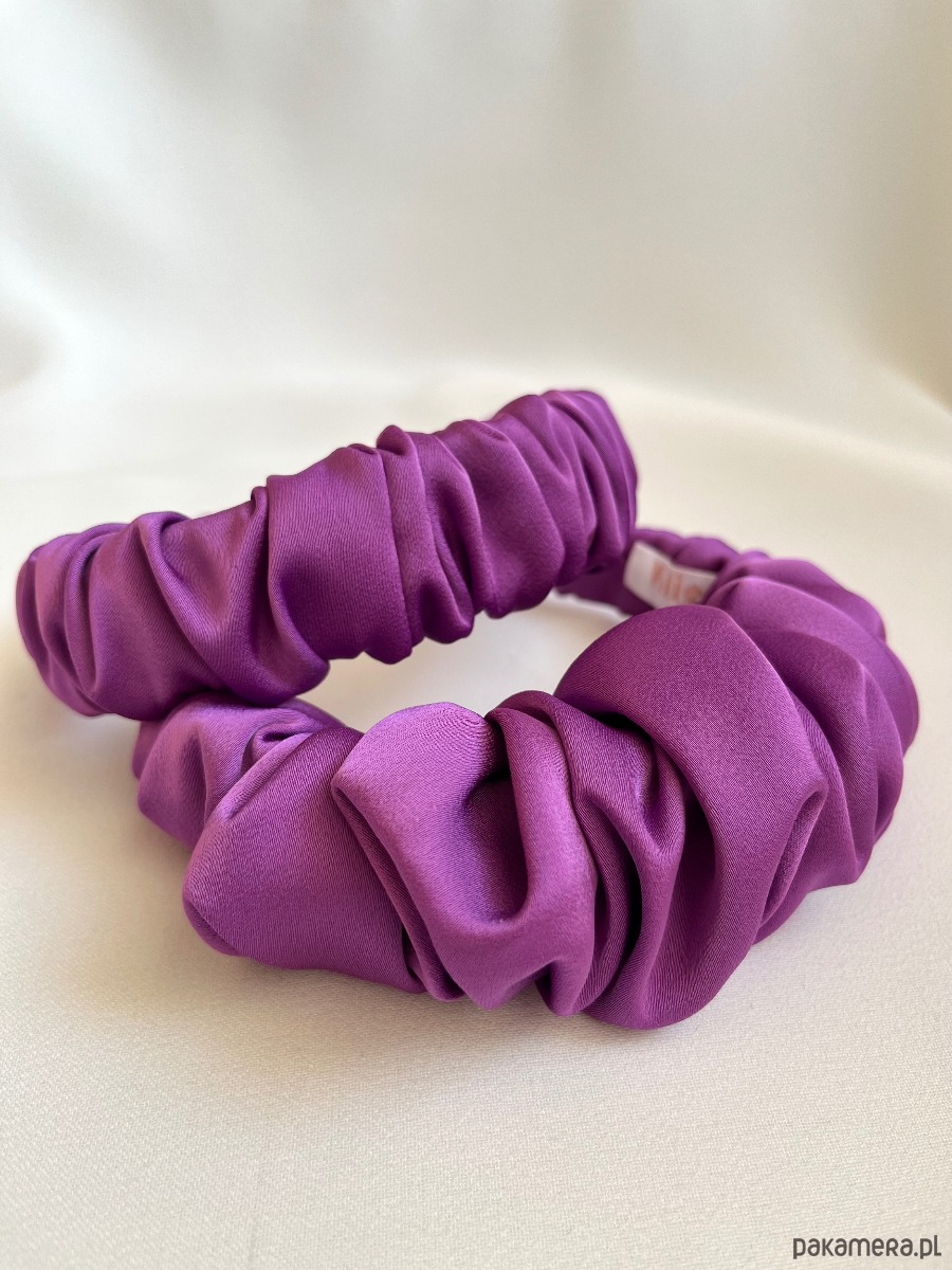 Marszczona fioletowa opaska w wersji maxi to niezwykle efektowny dodatek, który z pewnością przyciągnie wiele spojrzeń.