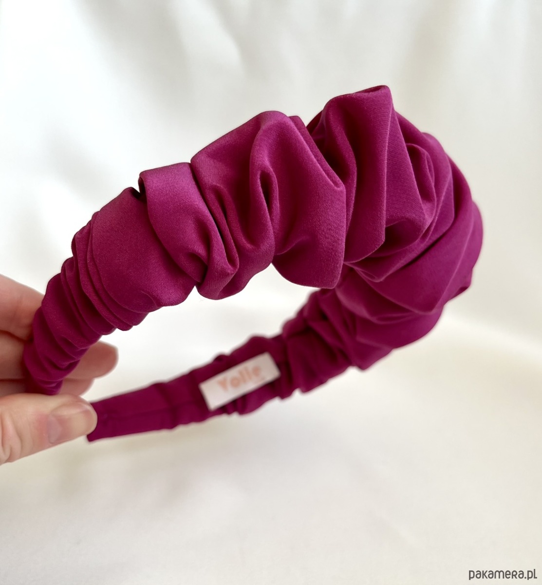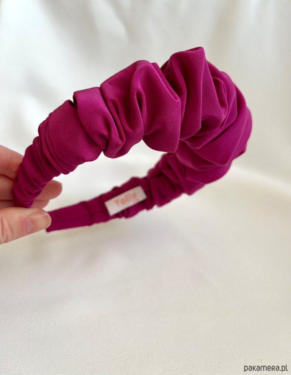Marszczona opaska w kolorze fuksji w wersji maxi to niezwykle efektowny dodatek, który z pewnością przyciągnie wiele spojrzeń.