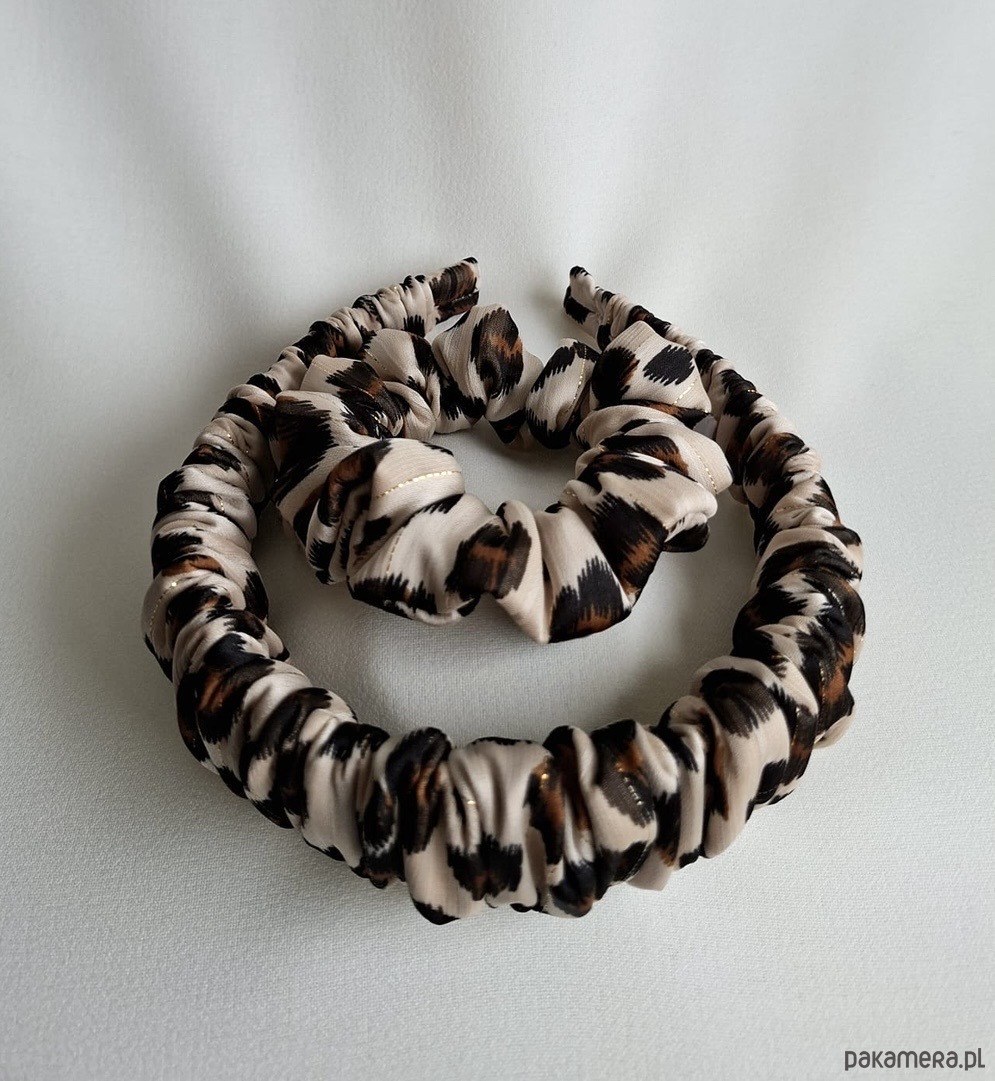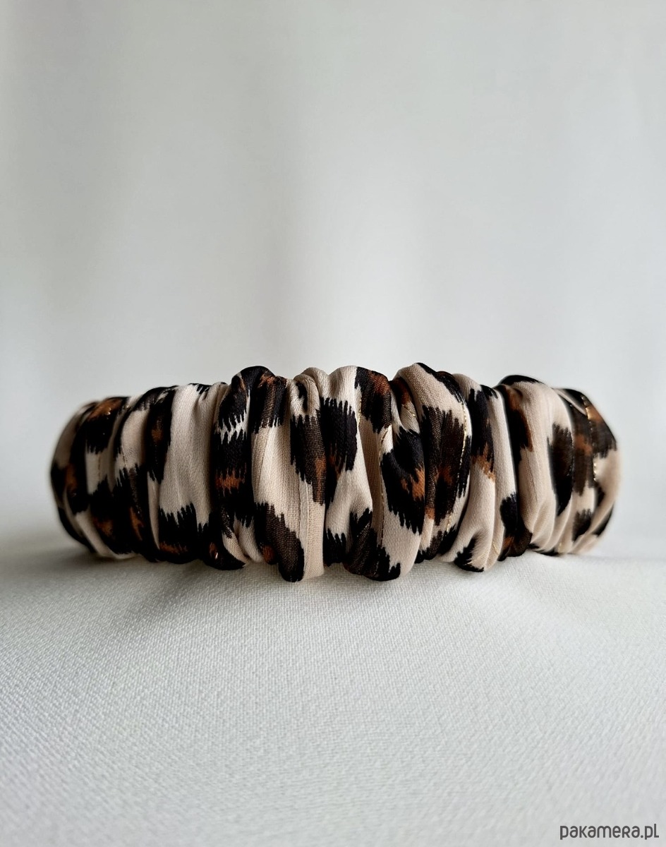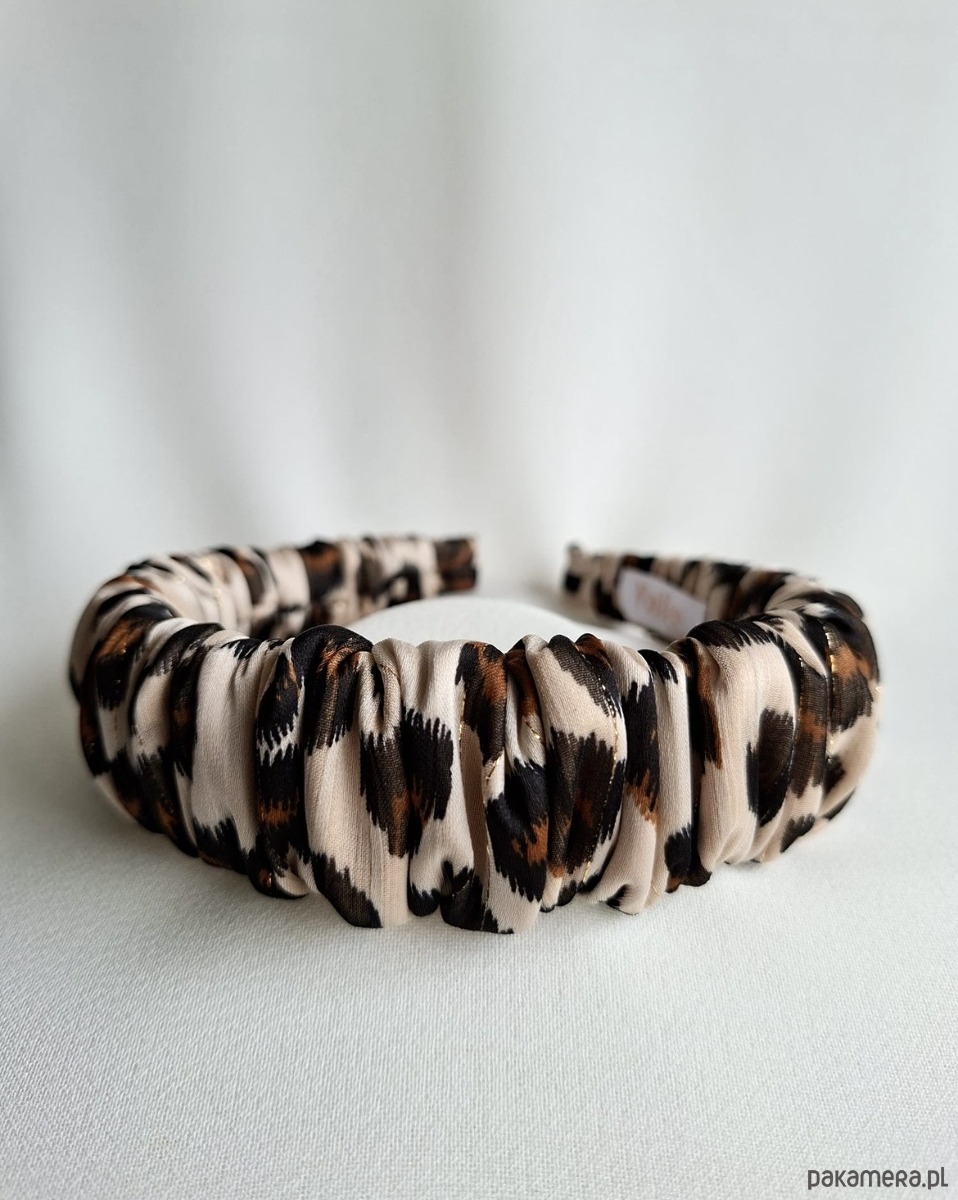 Marszczona opaska Sophie w panterkę to niezwykle efektowny dodatek do stylizacji. Idealny dla fanek zwierzęcych printów.