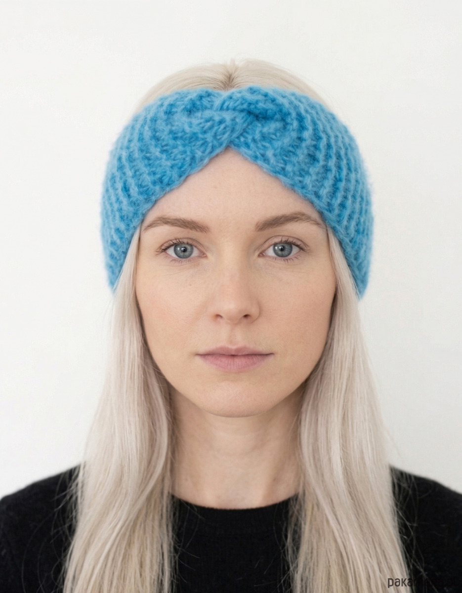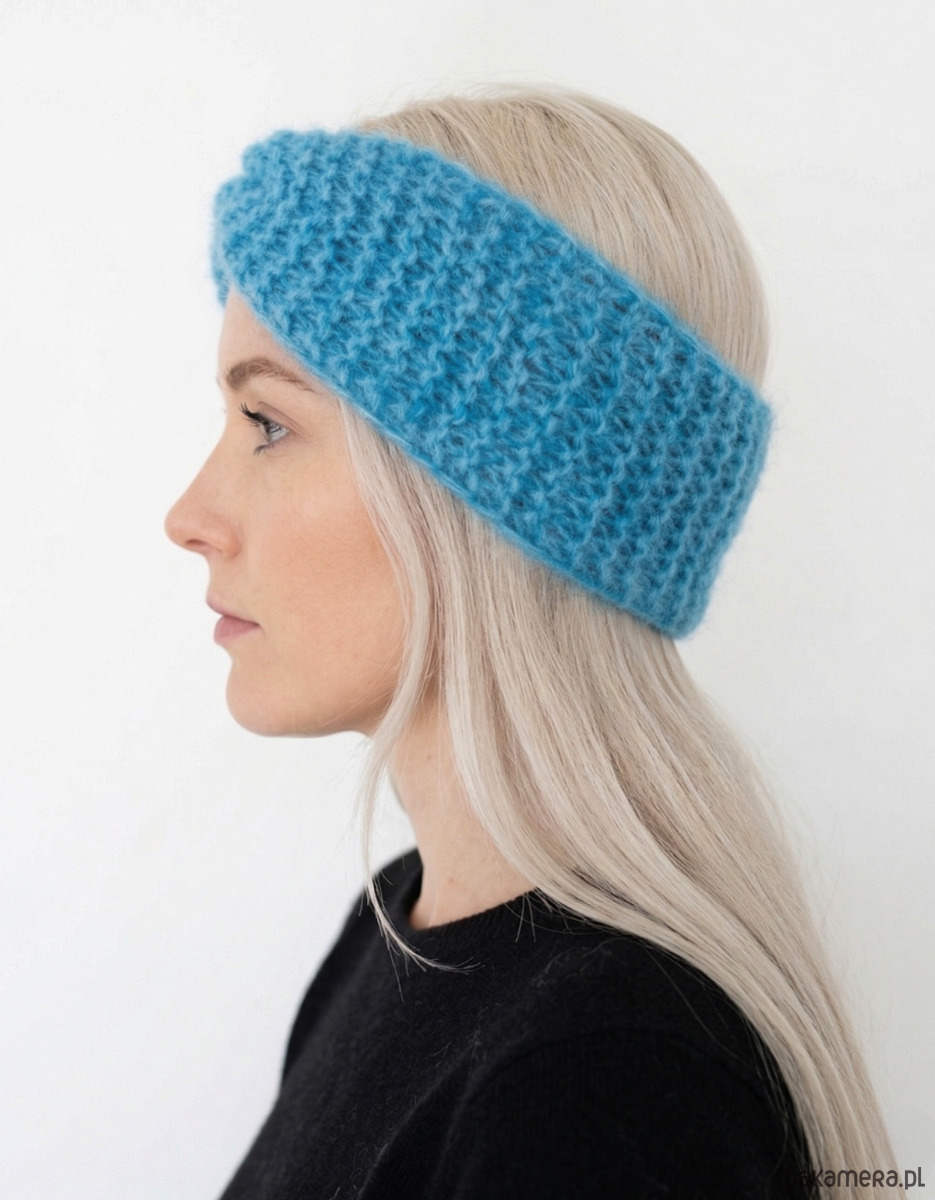 Aby opaska zachowała swoją puszystość i kształt przez wiele sezonów, zalecam delikatne pranie ręczne w letniej wodzie (max. 30°C) z użyciem płynu do wełny. Suszyć na płasko.