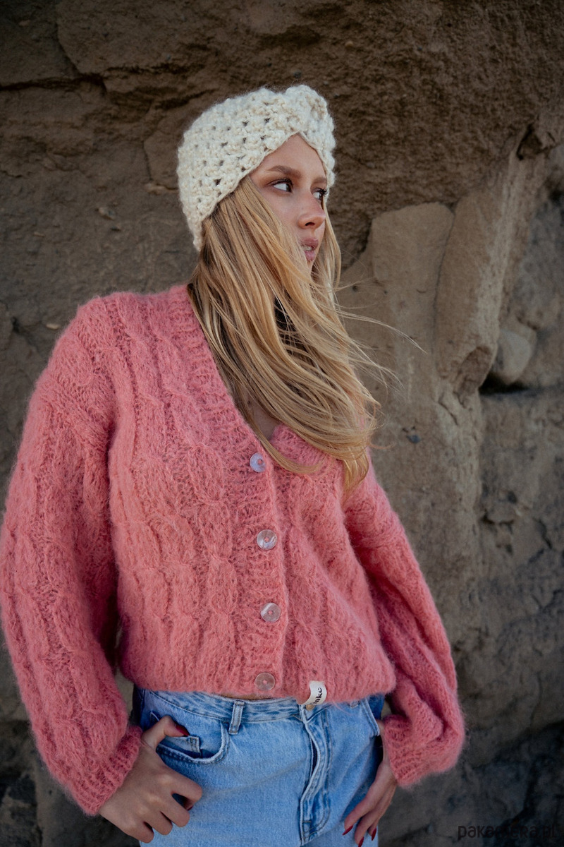Ze względu na ręczny proces produkcji, czas realizacji wynosi do 15 dni roboczych. Opaska wykonana jest z najwyższej jakości naturalnych włókien: alpaka, wełna owcza oraz jedwab, co gwarantuje nie tylko ciepło, ale także miękkość i delikatność dla skóry.