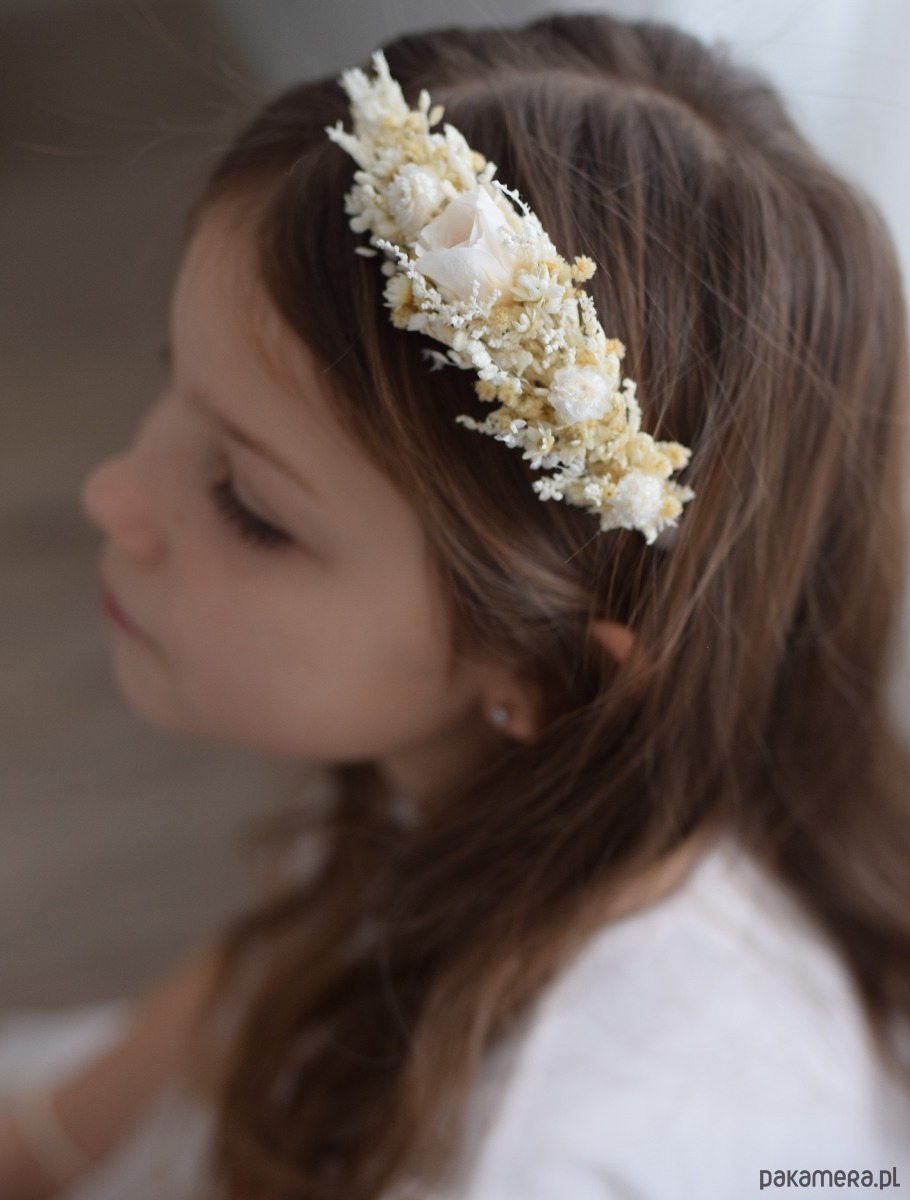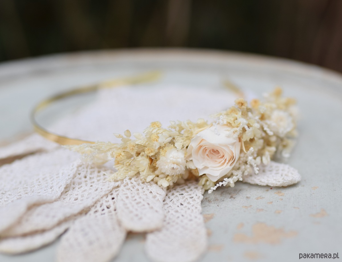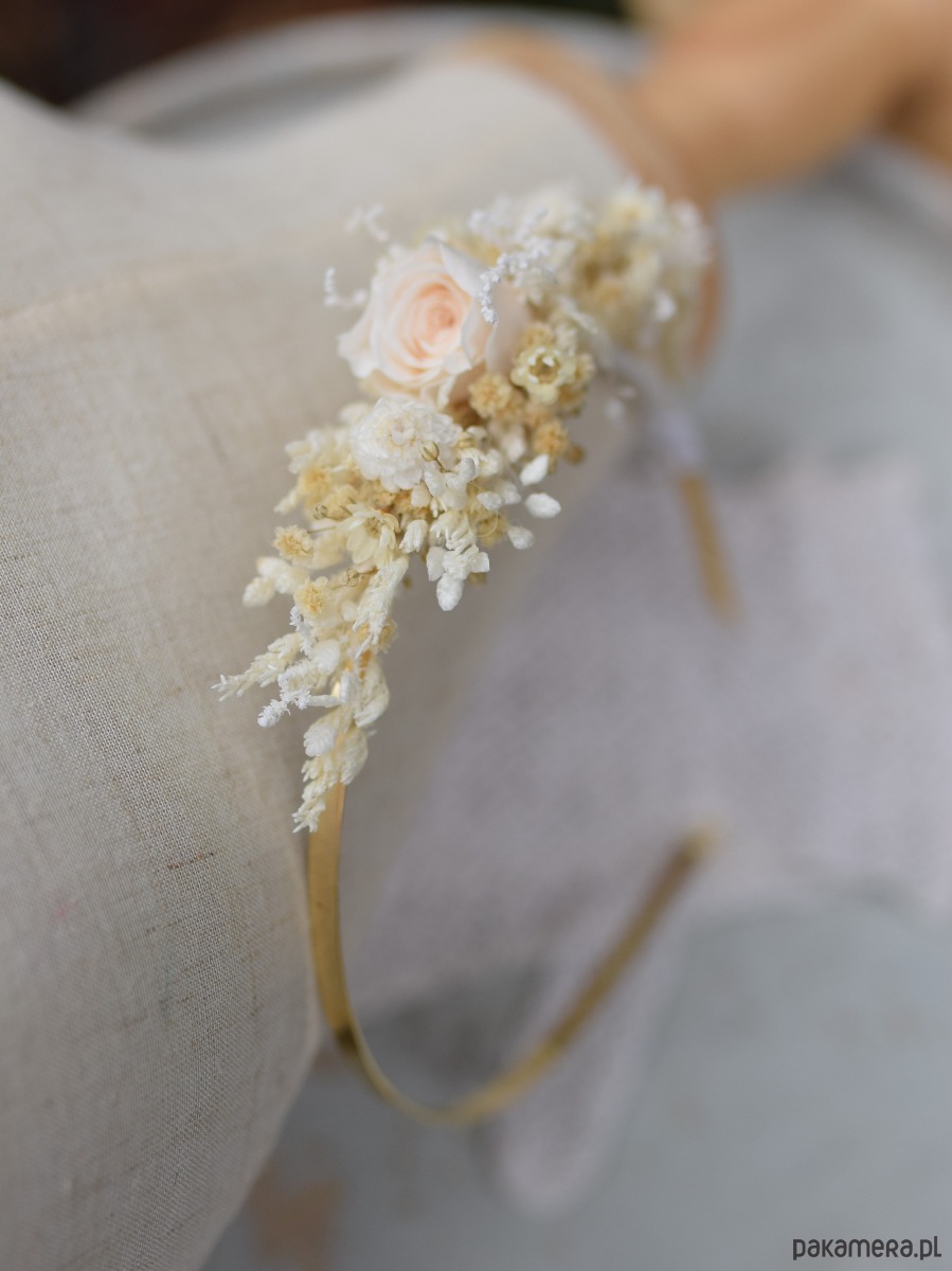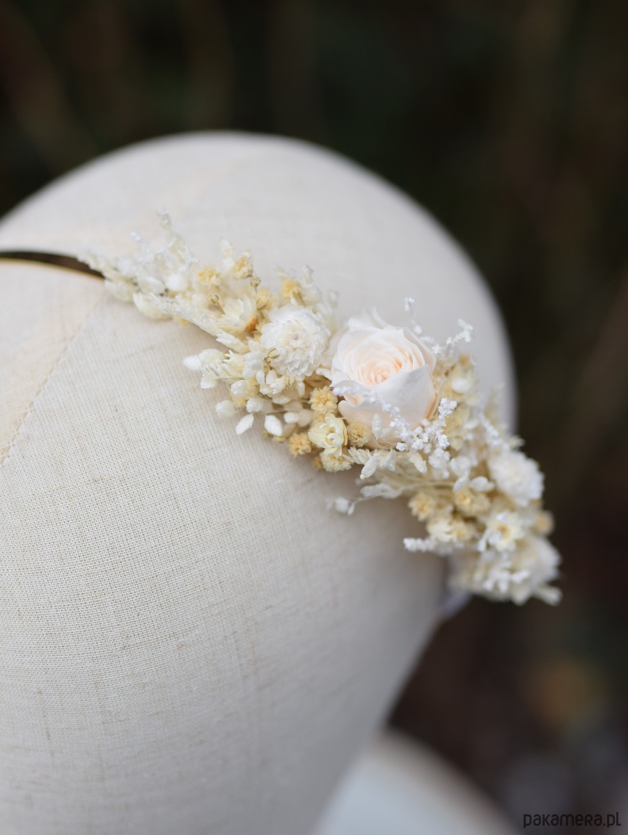 Opaska na głowę z jasnych stabilizowanych i suszonych kwiatów