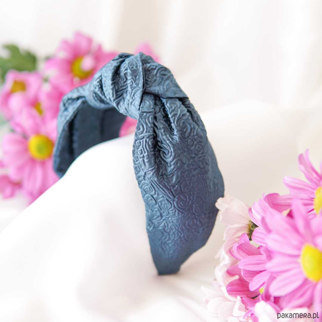 Opaska na włosy z węzłem to model w niecodziennym wydaniu. Lekka i wygodna ozdoba dla kobiet, które chcą podkreślić swoją fryzurę. Opaska jest w uniwersalnym rozmiarze, dopasowuje się do kształtu głowy. Została stworzona na gotowej wyprasce o szerokości 3 cm. Opaska została uszyta z eleganckiej tkaniny. Opaska na środku posiada ozdoby węzeł, który przyciąga wzrok. Od wewnętrznej strony przymocowana jest metka. Opaska wykonywana jest ręcznie Pasuje kobietom o długich i krótkich włosach. Sprawdzi się w niedbałych koczkach, kucykach oraz warkoczach. Urozmaici fryzury wieczorowe i codzienne.