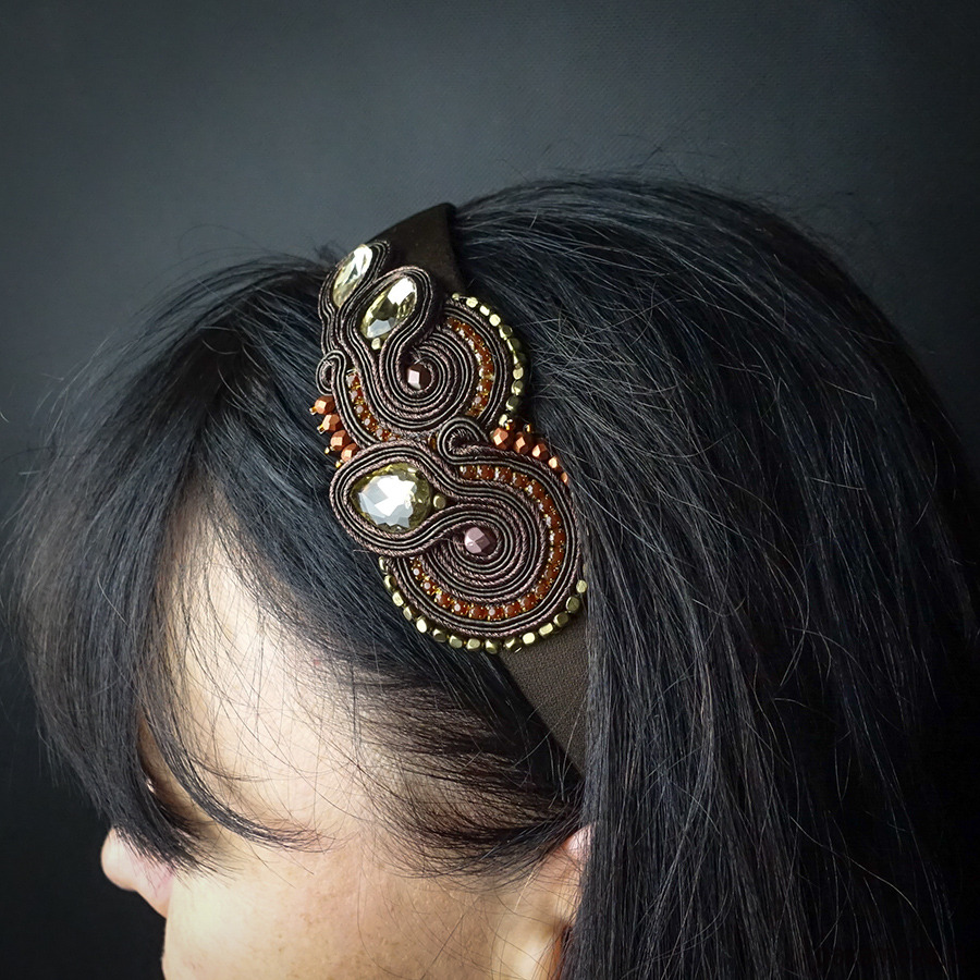 Opaska jest lekka, efektowna i wyjątkowo kobieca — idealna dla miłośniczek eleganckich detali z nutą artystycznego charakteru.