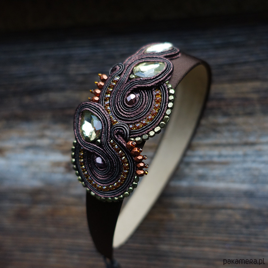 💫 Ozdoba umieszczona jest na wygodnej opasce w kolorze brązowym.