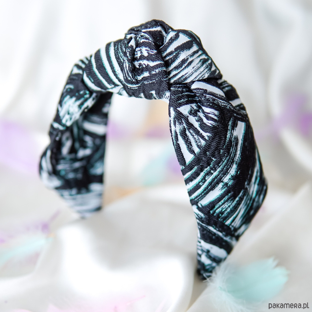 Opaska na włosy z węzłem to model w niecodziennym wydaniu. Lekka i wygodna ozdoba dla kobiet, które chcą podkreślić swoją fryzurę. Opaska jest w uniwersalnym rozmiarze, dopasowuje się do kształtu głowy. Została stworzona na gotowej wyprasce o szerokości 3 cm. Opaska została uszyta z eleganckiej tkaniny. Opaska na środku posiada ozdoby węzeł, który przyciąga wzrok. Od wewnętrznej strony przymocowana jest metka. Opaska wykonywana jest ręcznie Pasuje kobietom o długich i krótkich włosach. Sprawdzi się w niedbałych koczkach, kucykach oraz warkoczach. Urozmaici fryzury wieczorowe i codzienne.