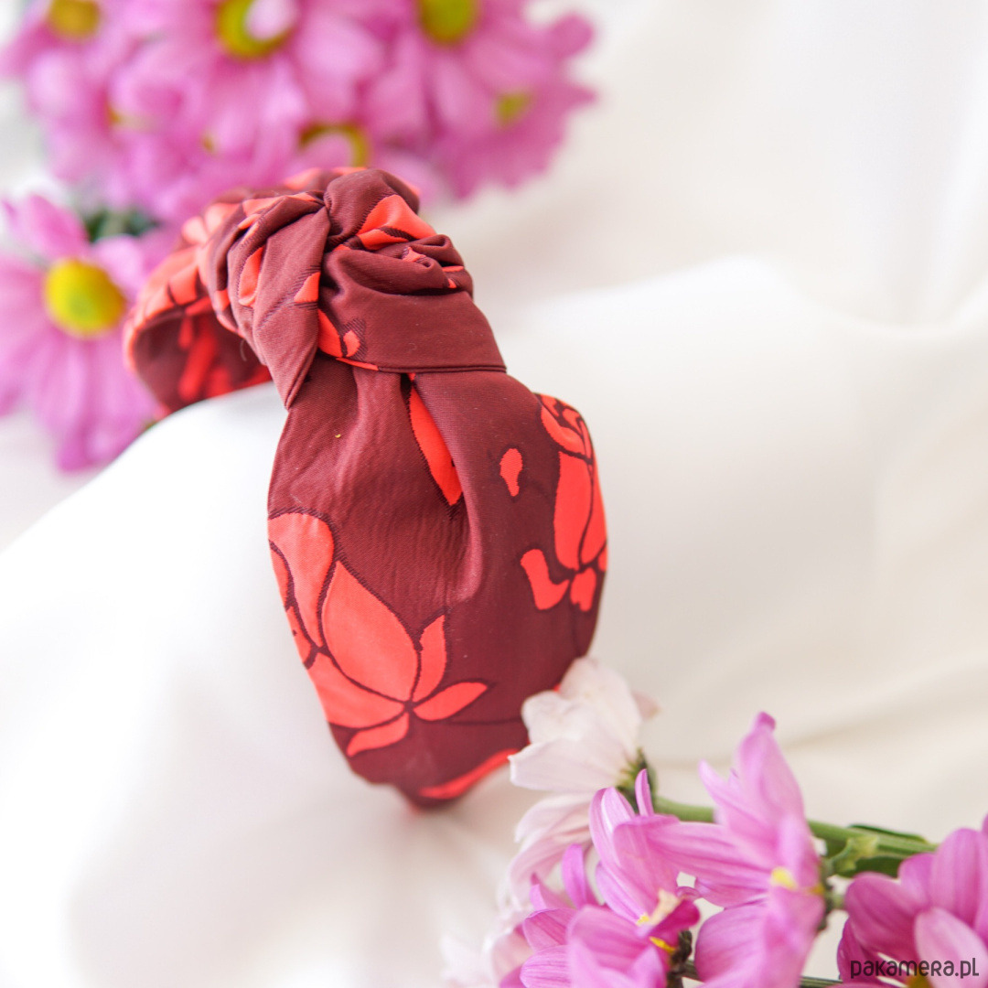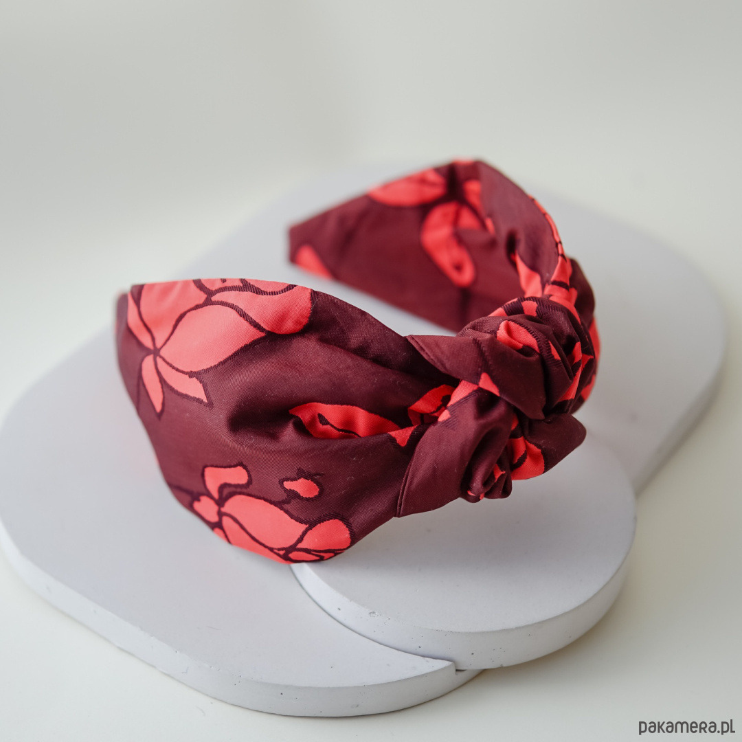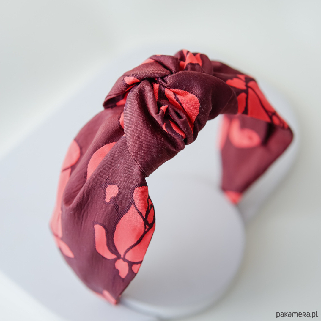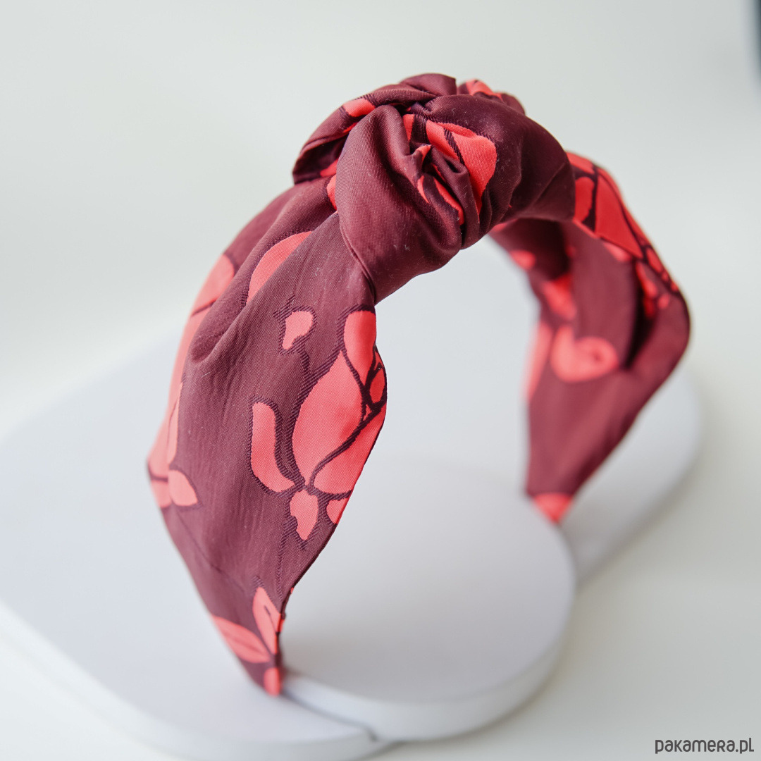 Opaska na włosy z węzłem to model w niecodziennym wydaniu. Lekka i wygodna ozdoba dla kobiet, które chcą podkreślić swoją fryzurę. Opaska jest w uniwersalnym rozmiarze, dopasowuje się do kształtu głowy. Została stworzona na gotowej wyprasce o szerokości 3 cm. Opaska została uszyta z eleganckiej tkaniny. Opaska na środku posiada ozdoby węzeł, który przyciąga wzrok. Od wewnętrznej strony przymocowana jest metka. Opaska wykonywana jest ręcznie Pasuje kobietom o długich i krótkich włosach. Sprawdzi się w niedbałych koczkach, kucykach oraz warkoczach. Urozmaici fryzury wieczorowe i codzienne.