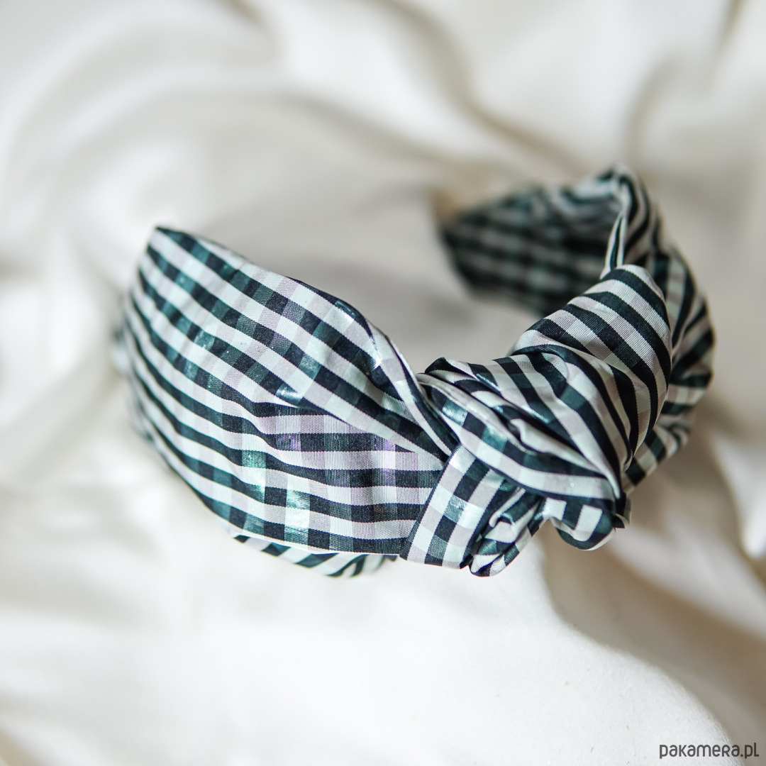 Opaska na włosy z węzłem metaliczny błysk na kracie