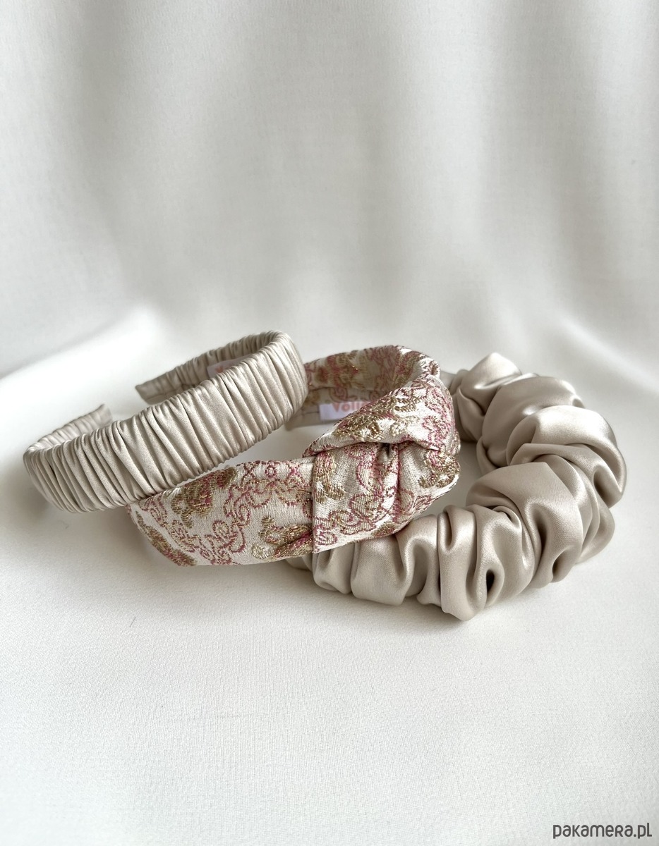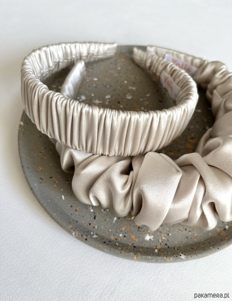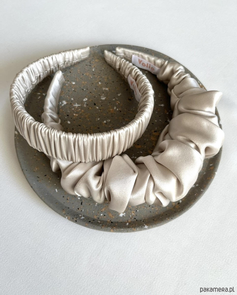 Płaska mocno marszczona opaska Alva w przepięknym perłowym kolorze to niezwykle efektowny dodatek, który z pewnością przyciągnie wiele spojrzeń.