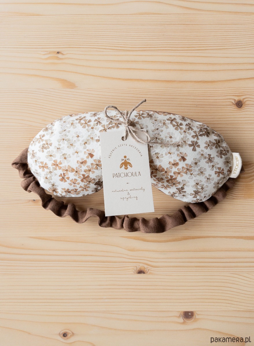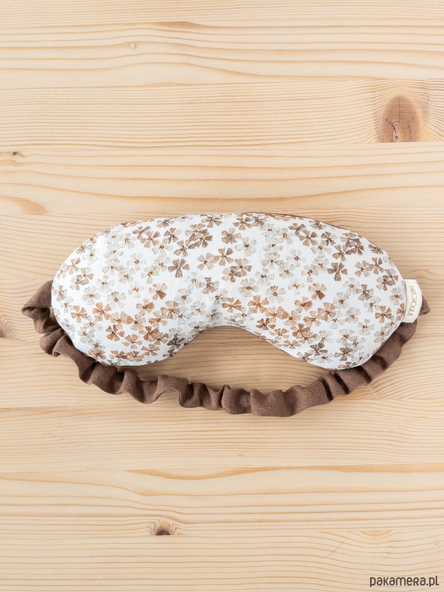 Bawełniana opaska na oczy w kwiatowy, projektowany ręcznie wzór.