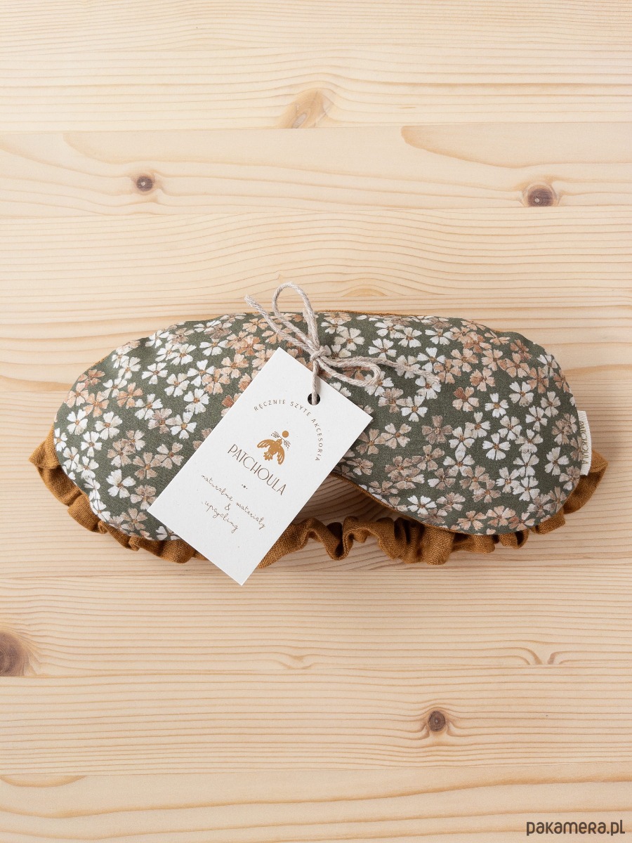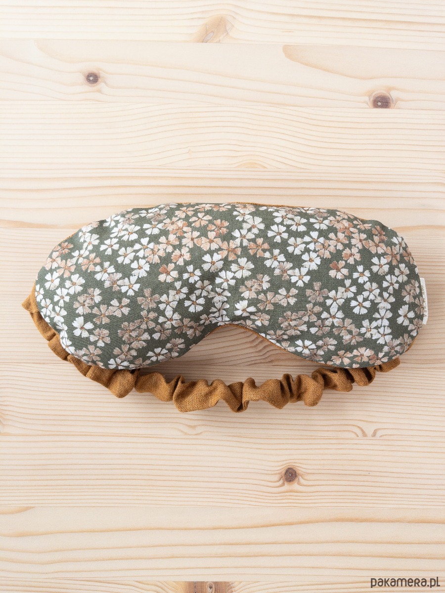 Bawełniana opaska na oczy w kwiatowy, projektowany ręcznie wzór.