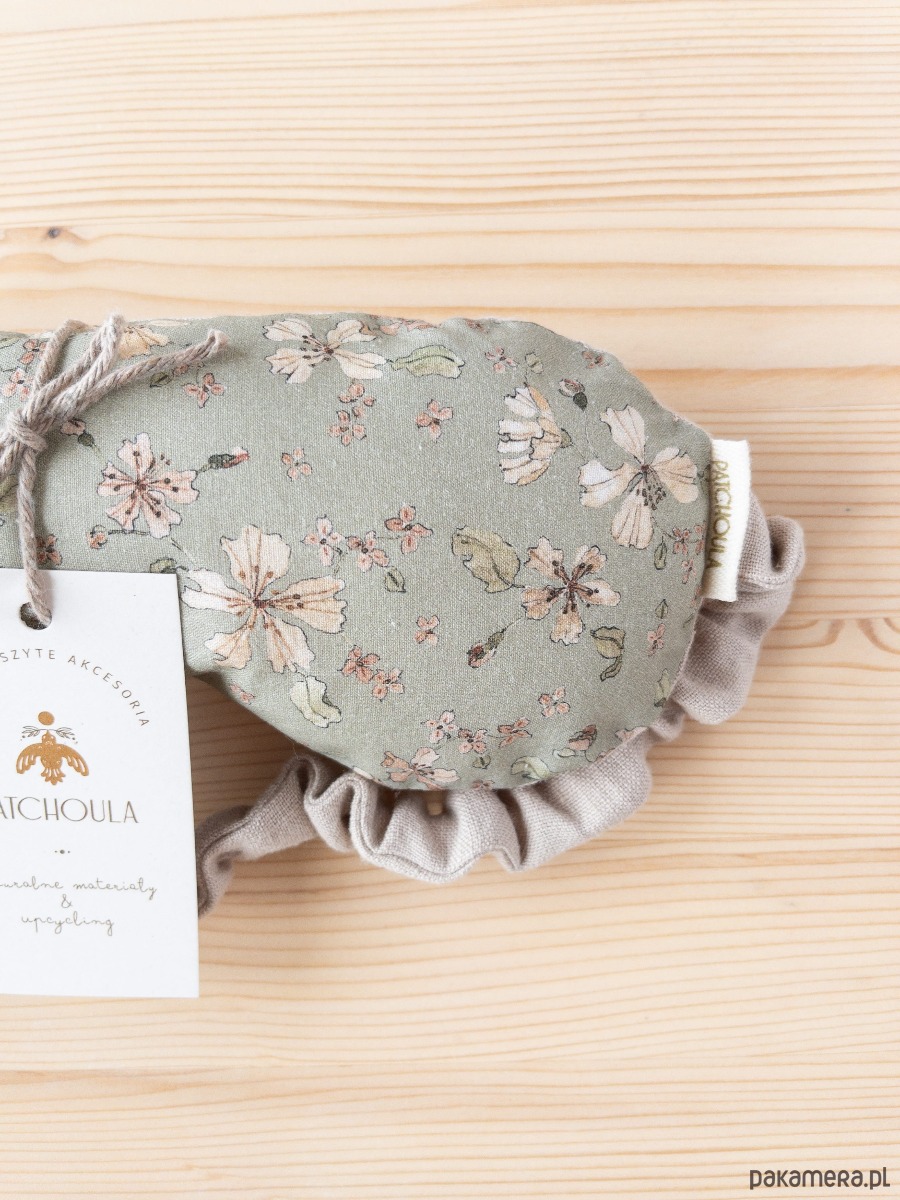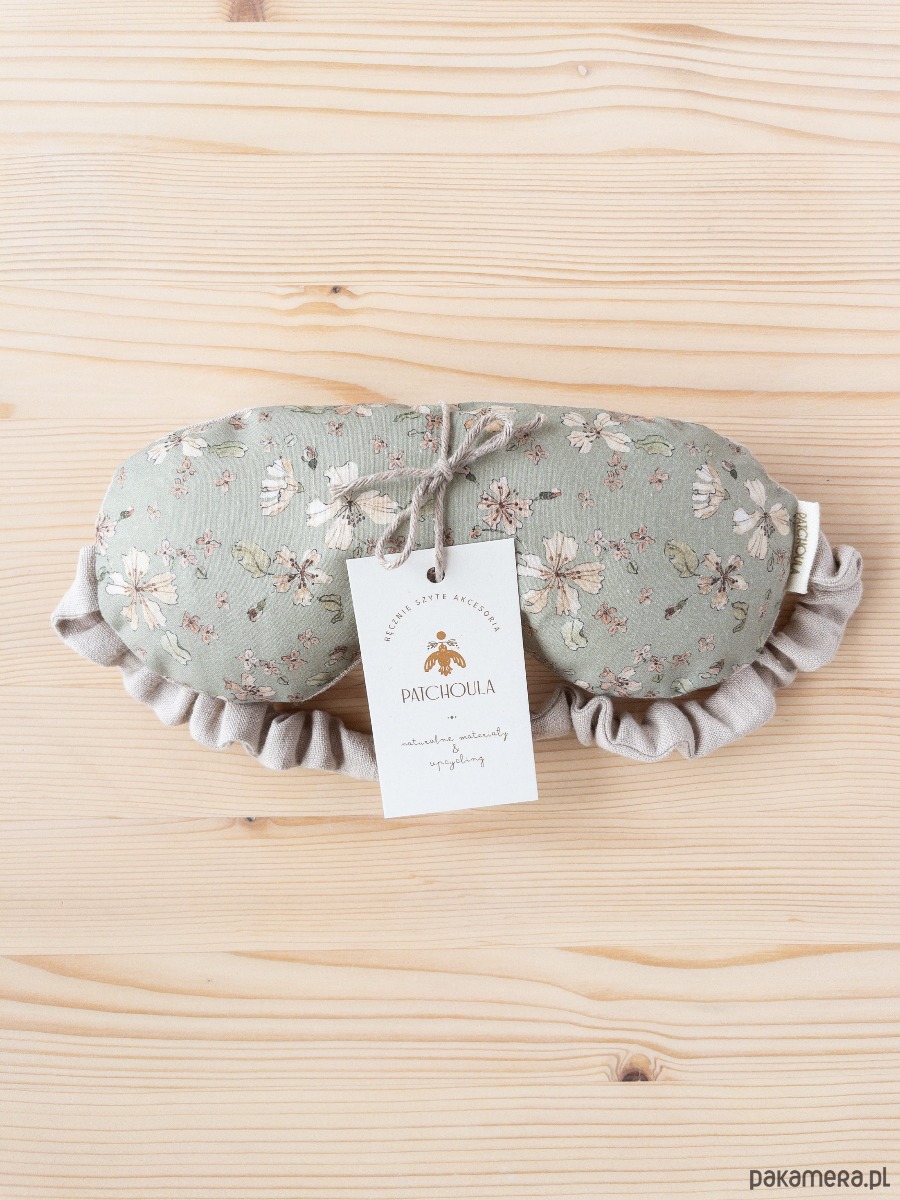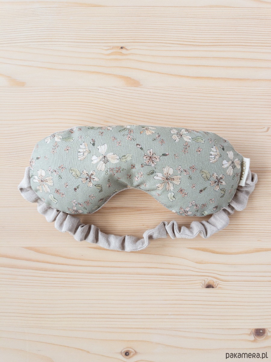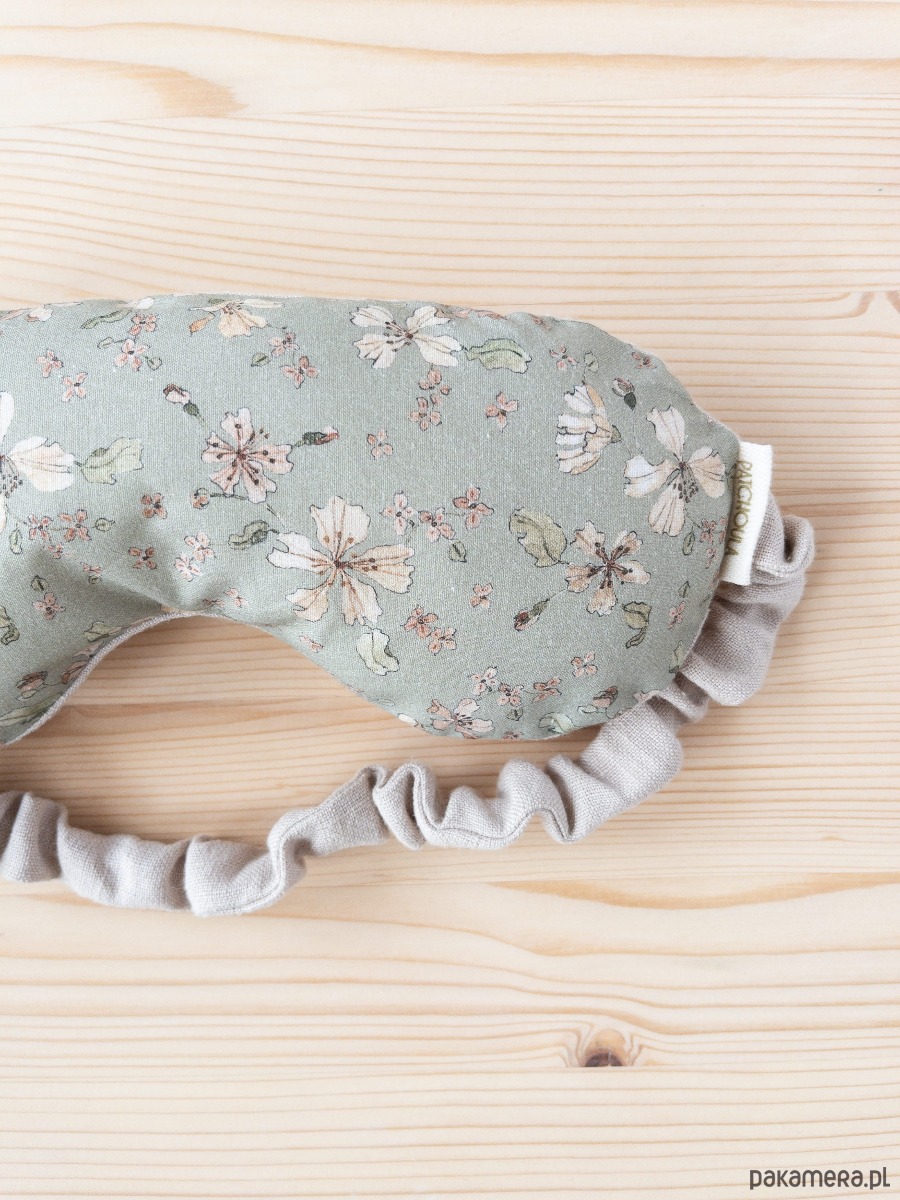 Bawełniana opaska na oczy w kwiatowy, projektowany ręcznie wzór.