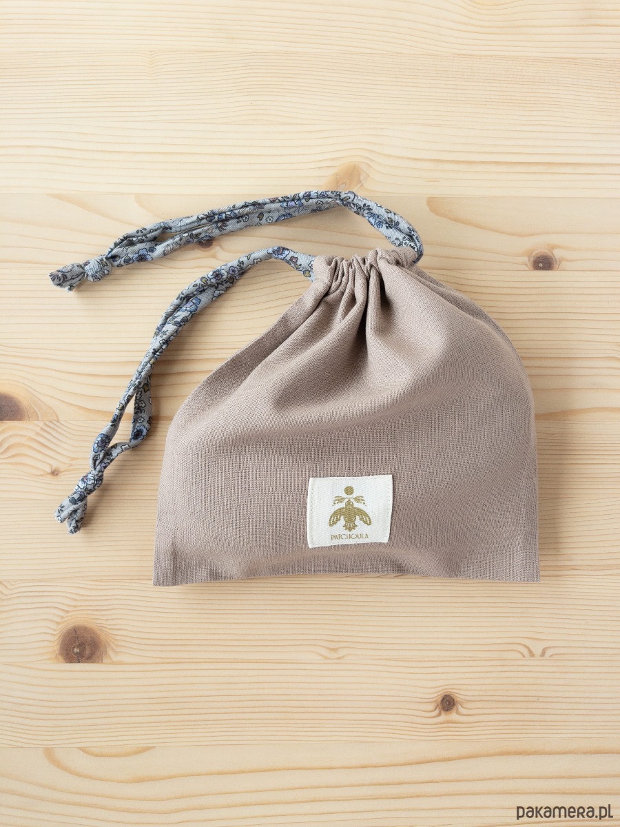 - Tkanina woreczek - tkanina wiskoza/len i wiskozowa wstążka
