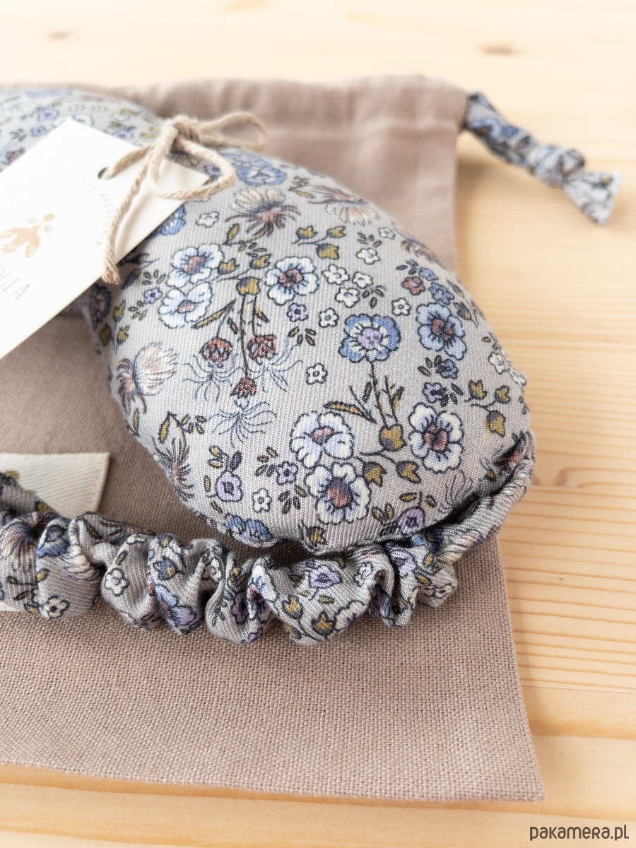 Użyta tkanina spełnia standardy OEKO-TEX 100, a wnętrze opaski wypełnia również certyfikowany, wiskozowy puszek (bez dodatku lawendy).