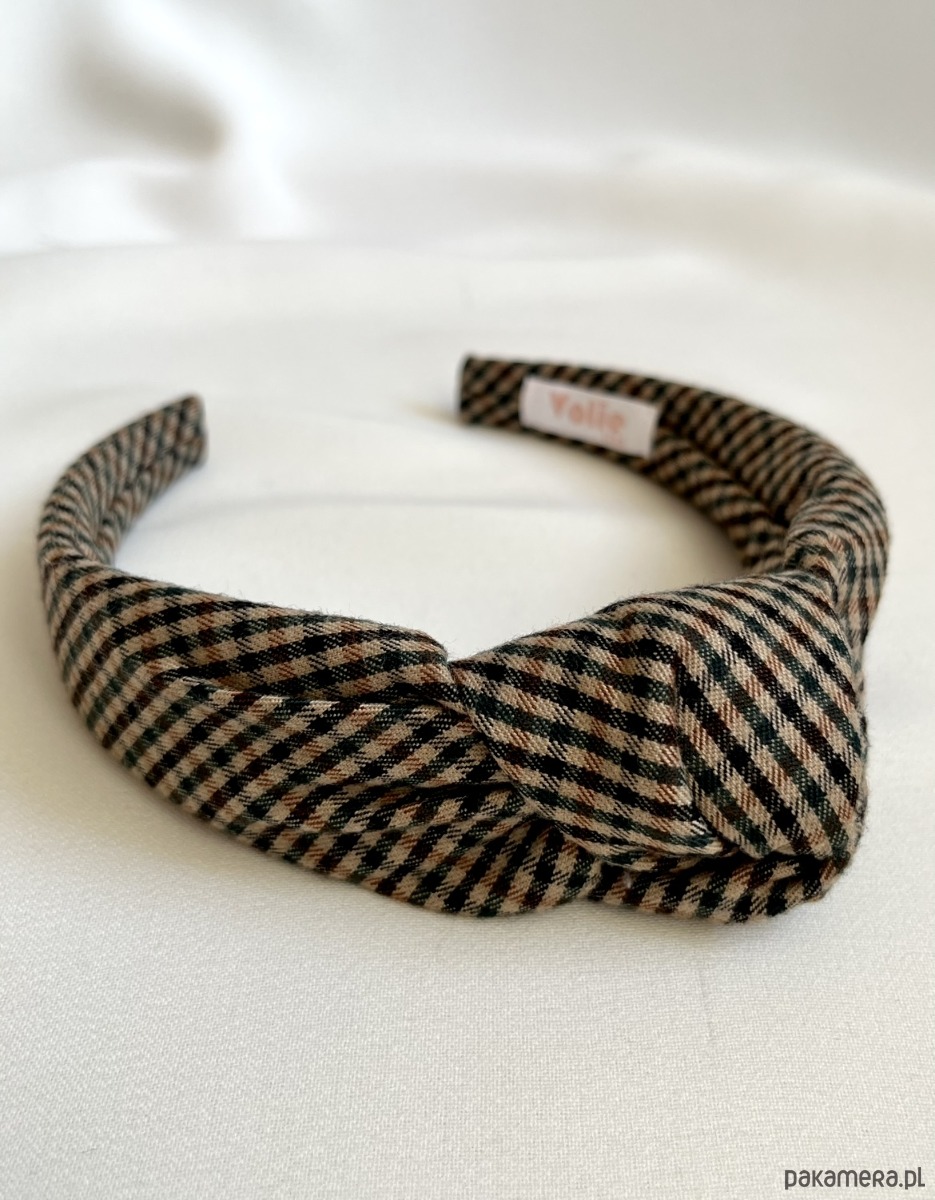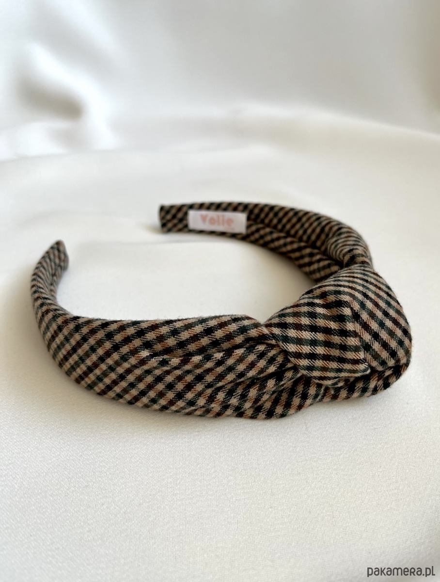 Opaska supełkowa Anna – klasyka w kratkę. Ta opaska to minimalistyczny, a zarazem efektowny dodatek do jesiennej czy też zimowej stylizacji. Wykonana z miękkiej tkaniny, mieszanki wiskozy i wełny, pięknie układa się na włosach, a wyjątkowy wzór w kratkę nadaje jej ponadczasowego, klasycznego charakteru.
