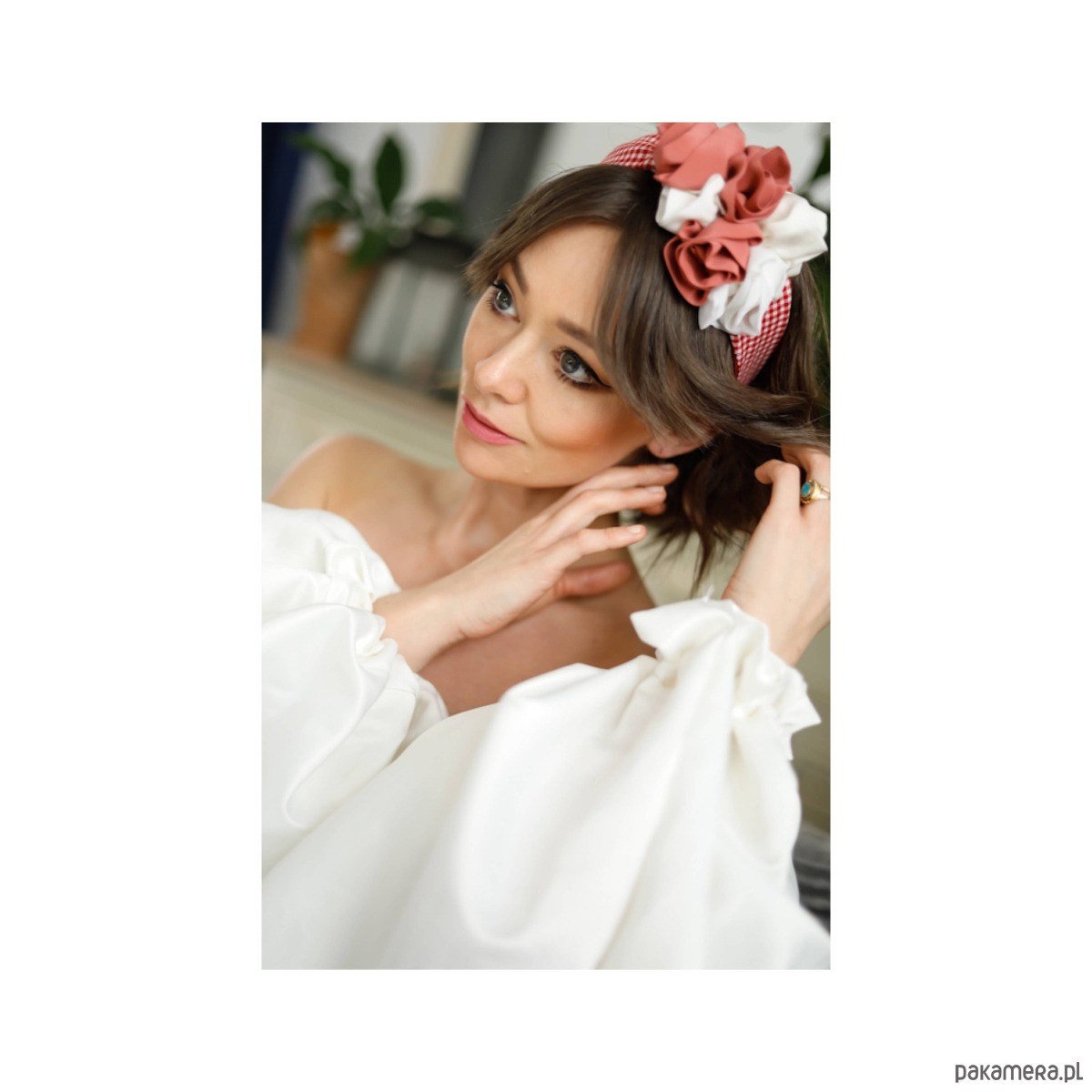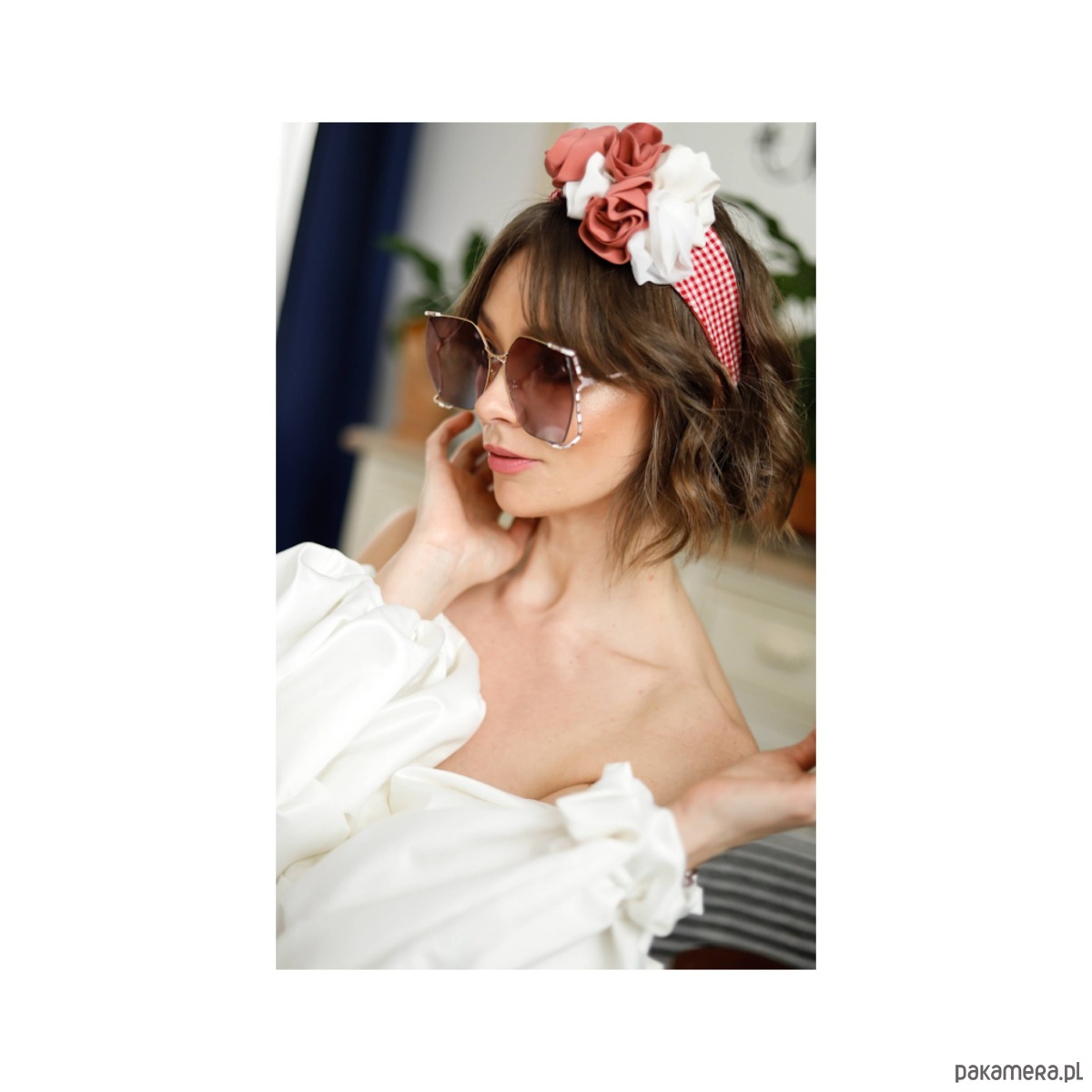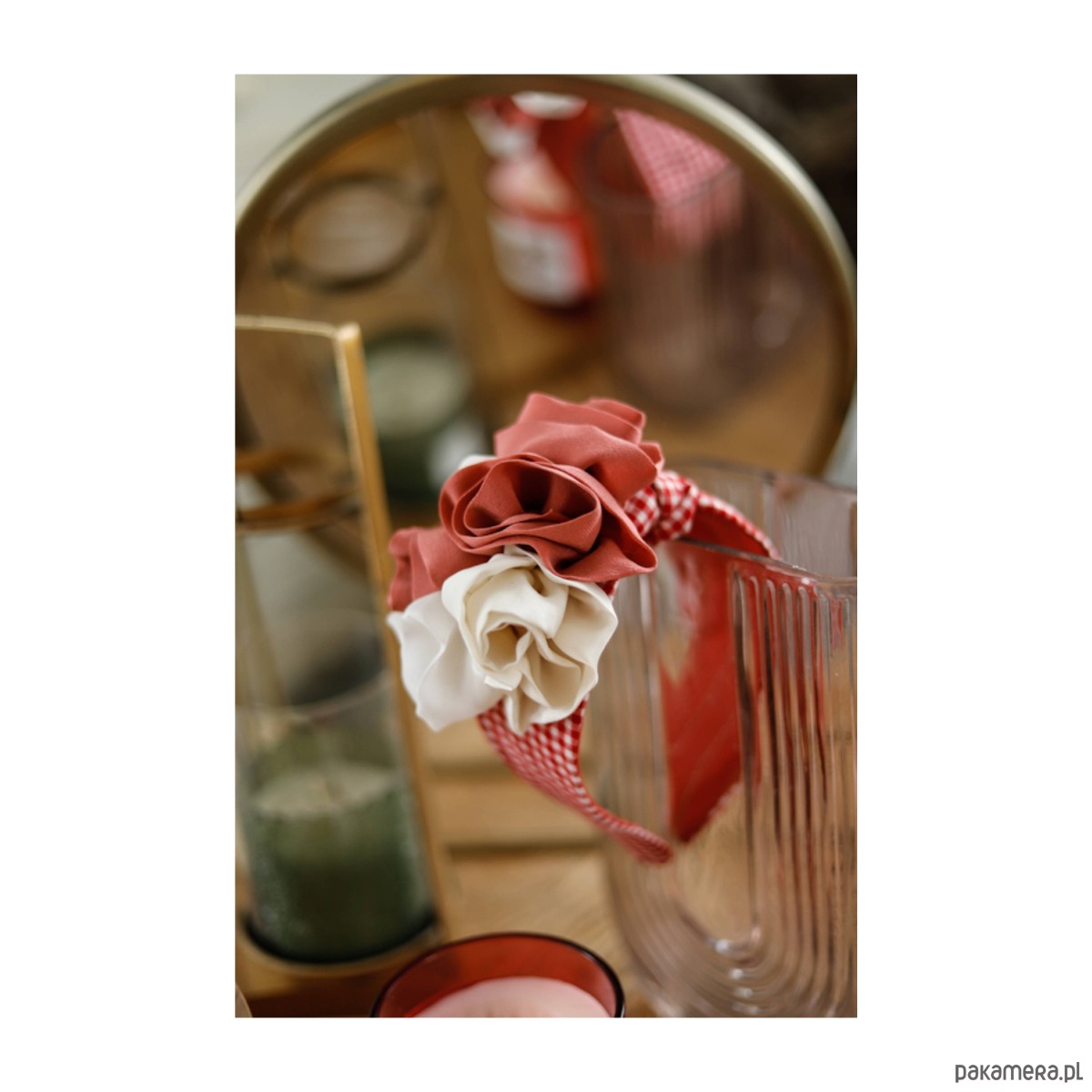 Opaska w kratkę z jedwabnymi rozami