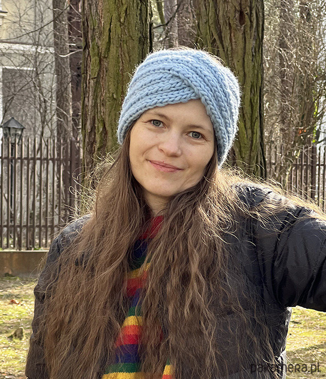 Opaska została wykonana w 100% z wełny peruwiańskiej. Możesz ją nosić na dwa sposoby jako zwykłą opaskę lub naciągnąć (opaska wykonana jest ściegiem ściągaczowym, rozciągliwym) wtedy dogrzeje nie tylko uszy, ale też głowę, stworzy jakby turban. Opaska jest miła w dotyku, ciepła i puchata. W chłodniejszy dzień będzie Ci ciepło, a w cieplejszy Twoja głowa się nie spoci.