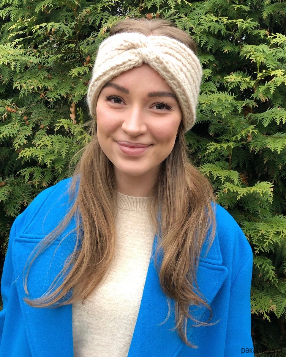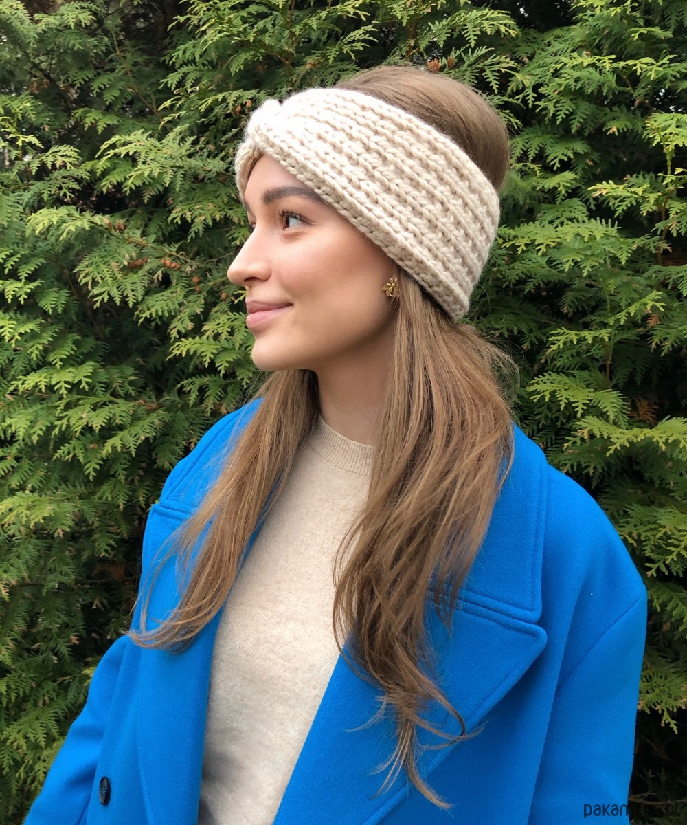 Opaska wełniana handmade jasnobeżowa marshmallow 100% wełna